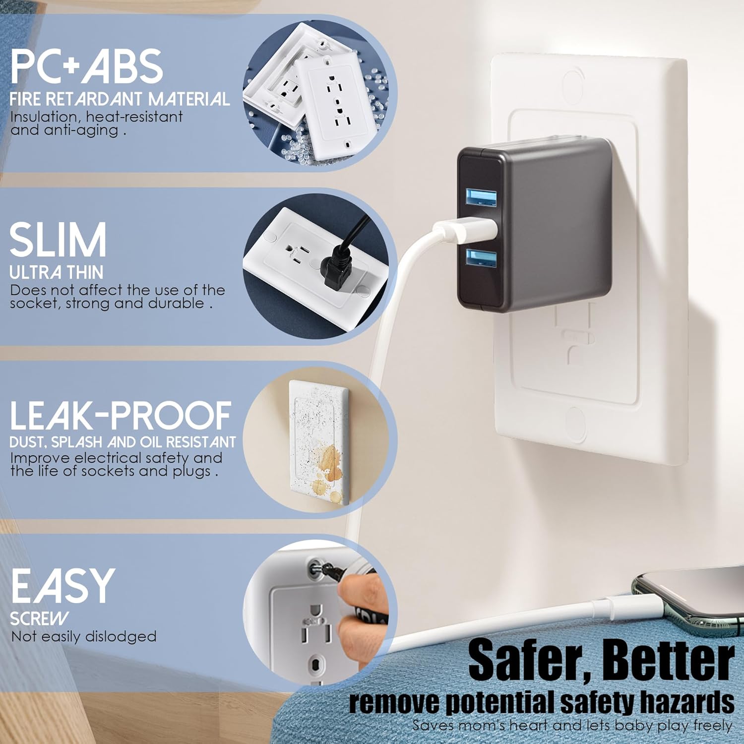 - 【PC+ABS Fire Retardant Material】 Made of PC+ABS durable plastic, the insulation is heat-resistant and anti-aging, VO-level flame-retardant, safer for children's health. New high-quality raw materials, environmentally friendly, certified by RoHS (SGS), mothers can trust!