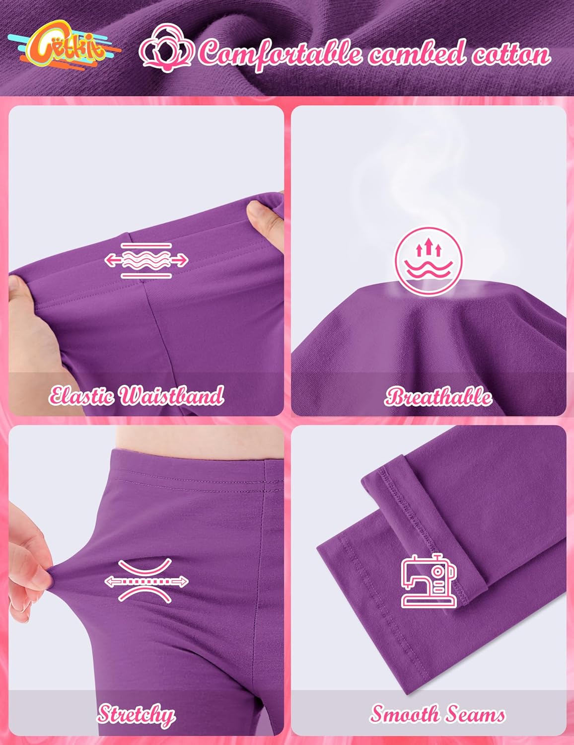 - 【High-Quality Girls' Leggings】 These girls purple leggings are made of 94% polyester and 6% spandex. The fabric is stretchy, ultra-soft, and breathable, making these girls leggings very comfortable and flexible. All leggings are made from premium four-way stretch fabric, with an elastic band sewn into the waistband, which lies flat on the waist for a comfortable and good fit.