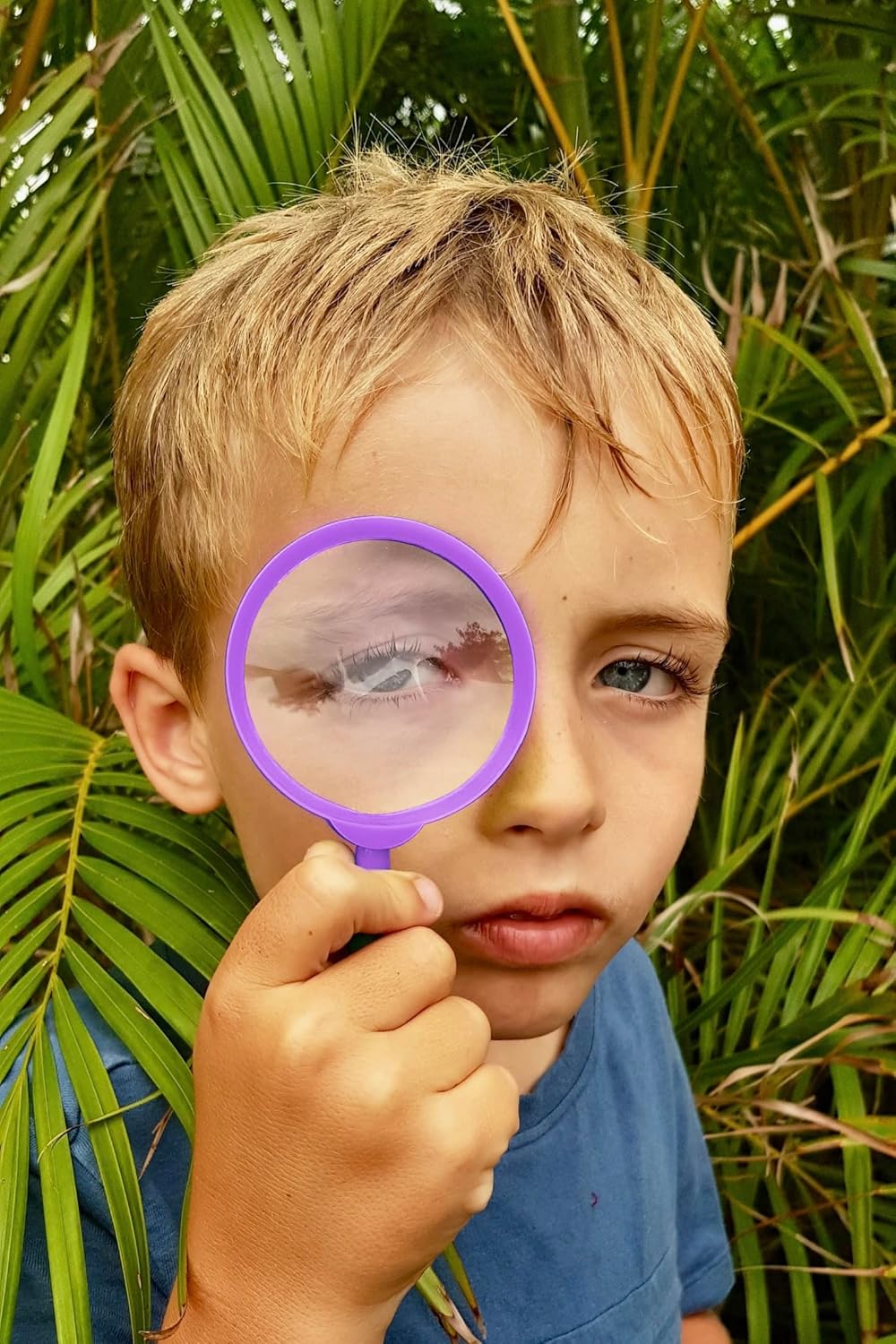 - šLARGE MAGNIFYING GLASS - 3 x magnification for examining plants, insects and rocks. Wonderfully fun for camping trips and outdoor or indoor investigations. SAFE Non Choking pealess FOX WHISTLE - great for hiking, scouting, sports, games and safety locator. Clip on thick lanyard to be worn around the neck for quick access for signaling location or emergency use.