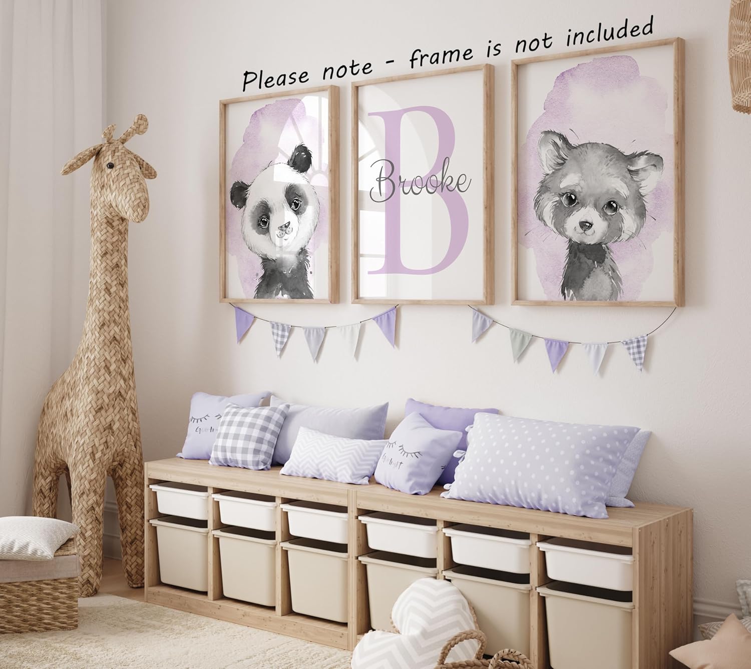 Safari Animals Set of 3 Unframed Poster Prints for Baby Girls Nursery Bedroom Playroom, Personalized Name, Choice of 12 Animals, Pink Purple (12x16)