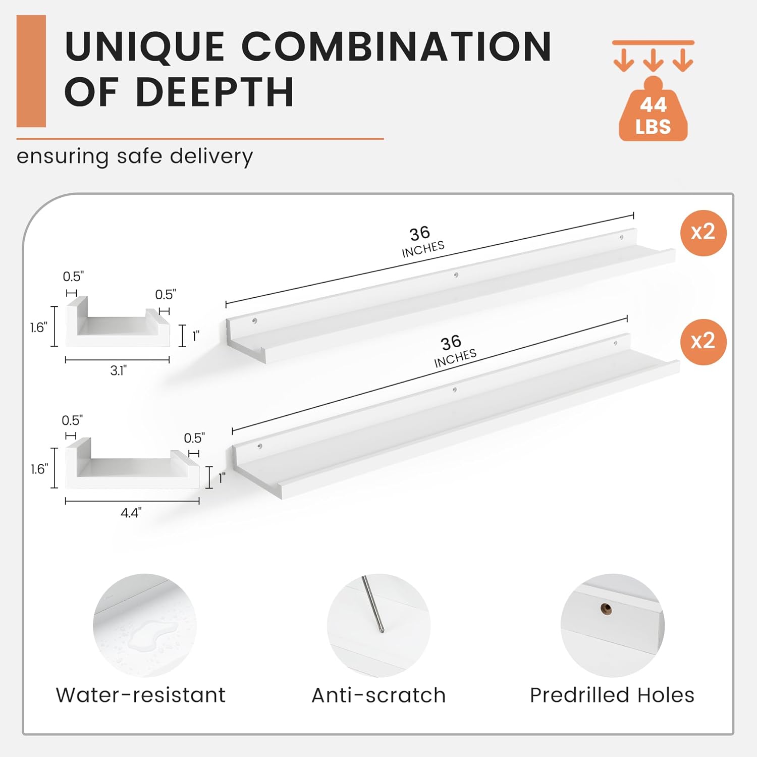 Floating Picture Ledge Shelves for Wall Set of 4, 36 Inch Wall Shelves with Lip Long Large Nursery Book Shelf for Toys Storage Kids Bookshelf Wall Mounted Living Room Bedroom Decor Frames