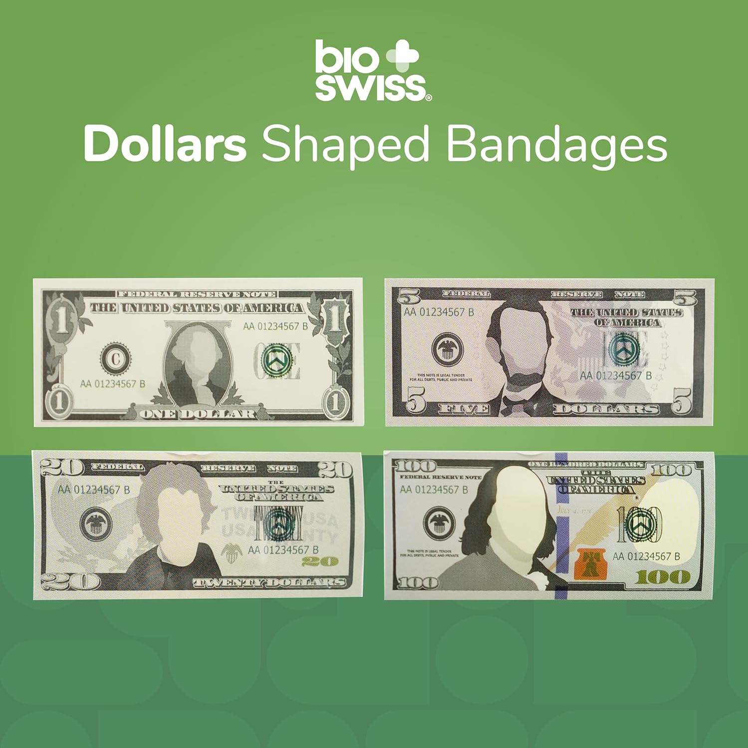 - MONEY BANDAGES: This 50 piece pack of adorable dollar bill shaped bandages is great for putting a smile on kids' faces while protecting wounds such as cuts, scrapes, and burns; sticky bandages are perfect for kids and adults alike, and also for school nurses and pediatric doctors