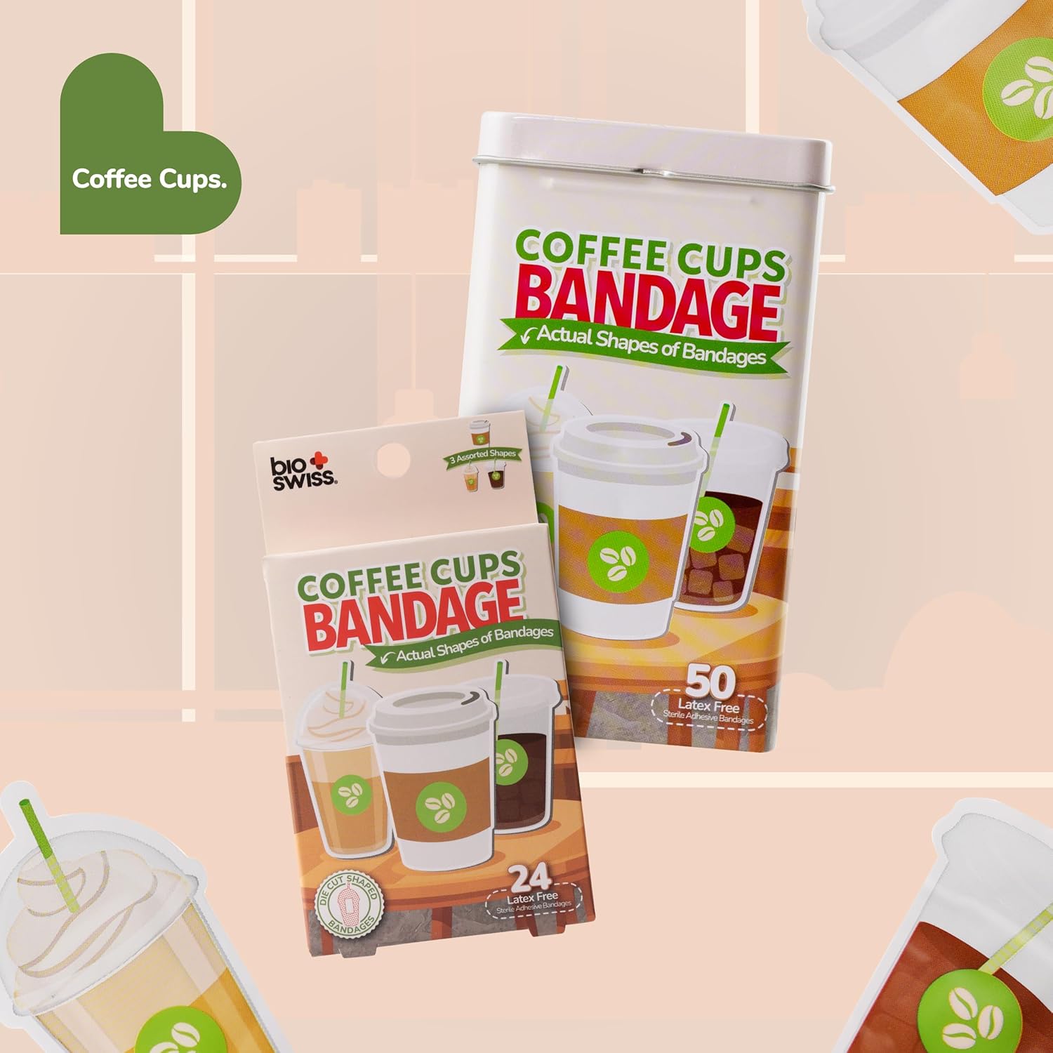 - COFFEE BANDAGES: This 24 piece pack of adorable coffee cup shaped bandages is great for putting a smile on kids' faces while protecting wounds such as cuts, scrapes, and burns; sticky bandages are perfect for kids and adults alike, and also for school nurses and pediatric doctors