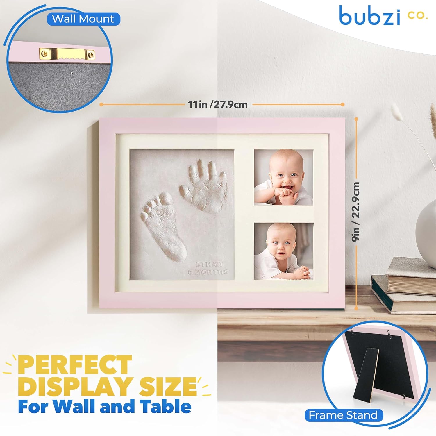 - EASY TO USE FOR BABY AND PETS The Bubzi co baby keepsake frame is designed with you in mind. Even with the tiniest, wiggliest, fingers and toes, you can flawlessly capture your newborn's handprint, footprint ( or even paw print ). Simply press their tiny hand or foot into the soft, air-drying clay to capture a precious imprint you will cherish forever!