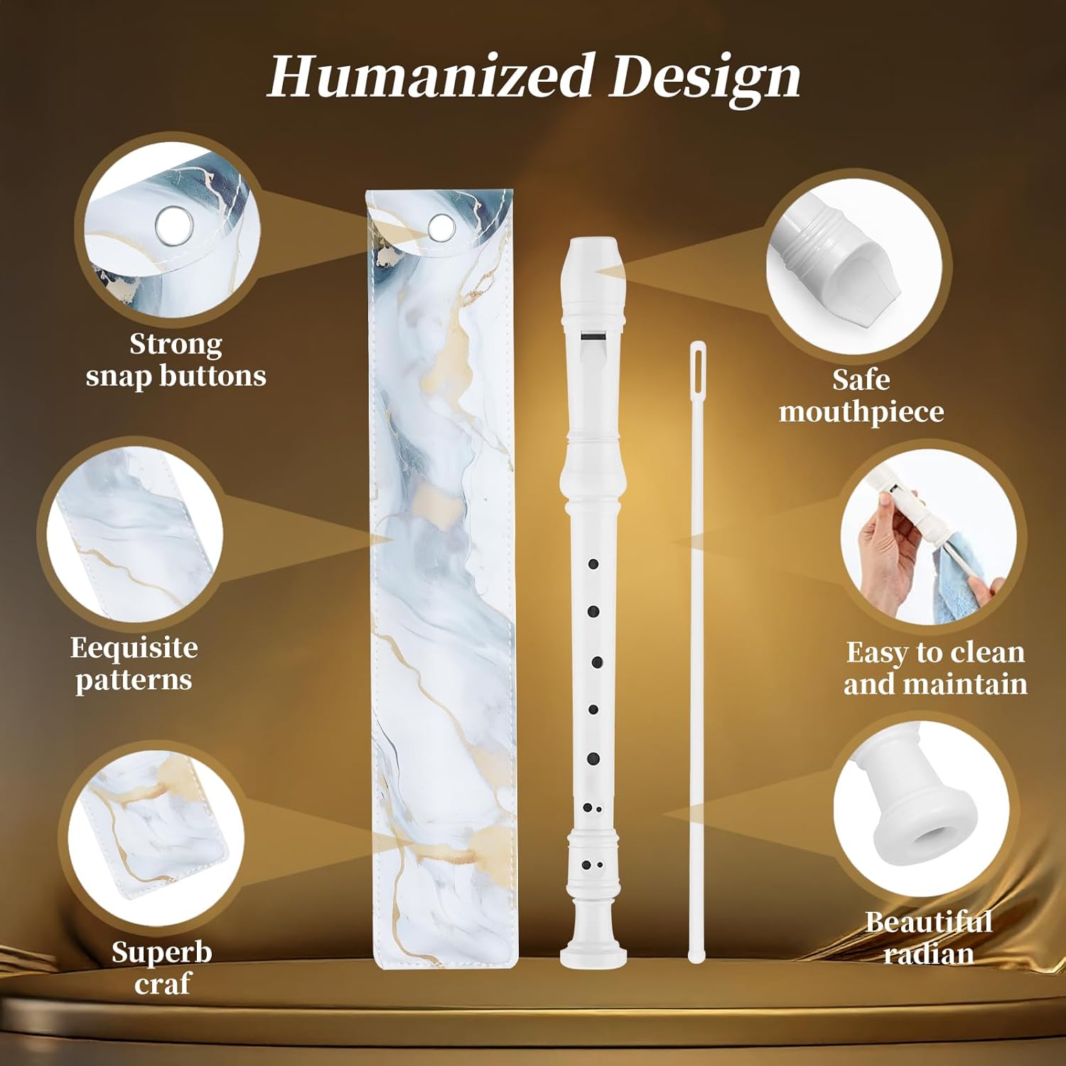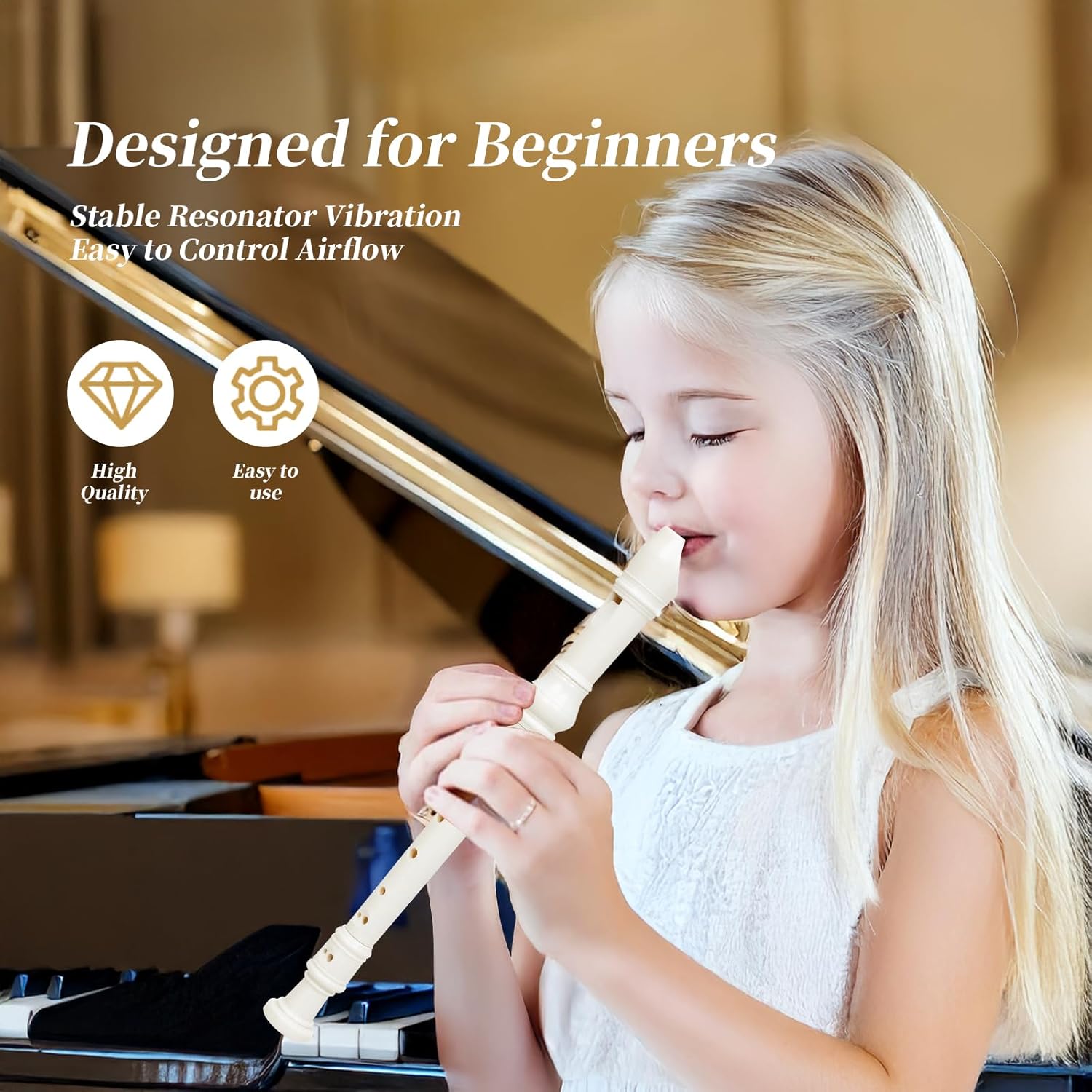 Soprano Recorder for Kids Beginners, German Fingering, C Key, 3 Piece with Cleaning Rod, Bag, Fingering Chart (White)…