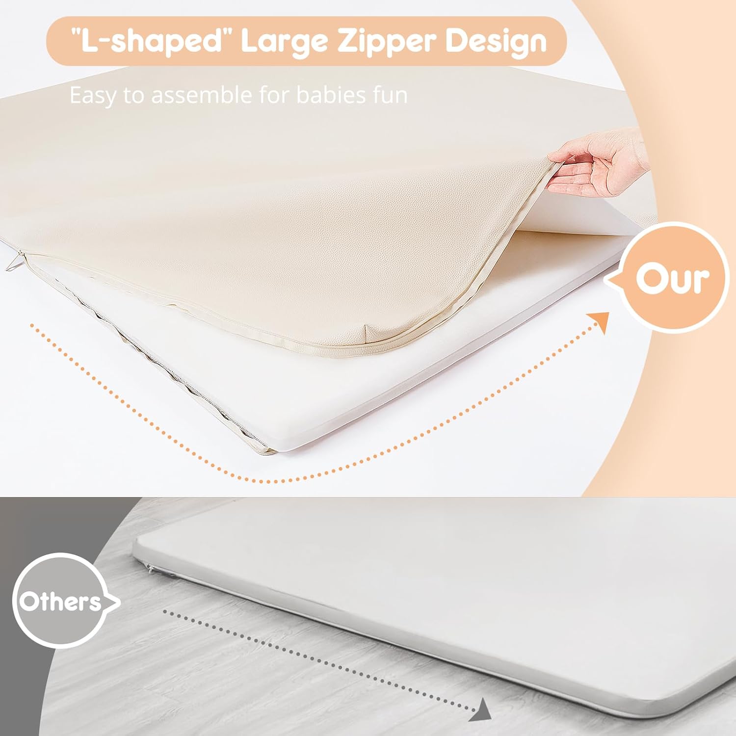 - "L-shaped" Zipper Design: We have upgraded the regular zipper to L-shaped, making it easier to install and remove the foam mat. And the mat comes with 2 buckles straps to helps secure and store the foam mat when not in use