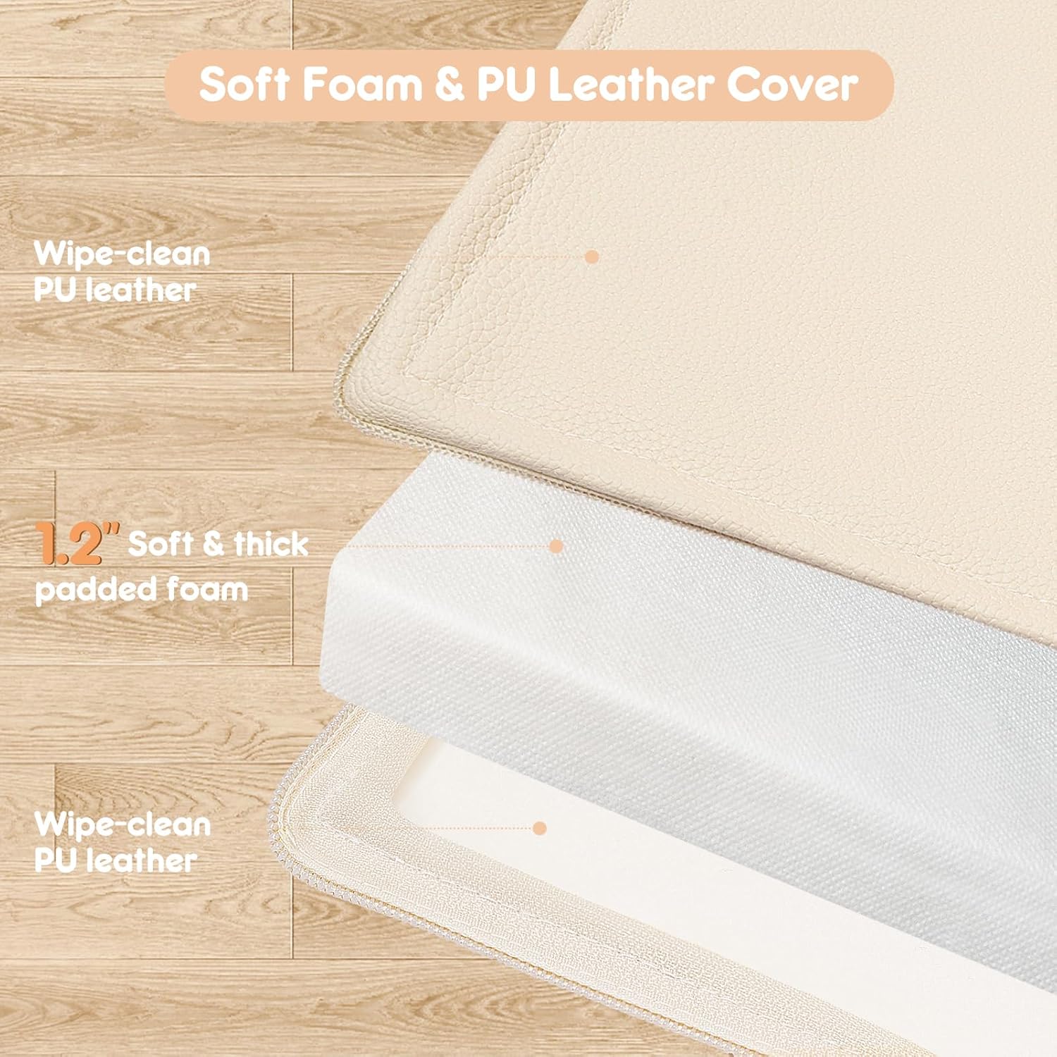- Durable Premium Design:The cover of the baby mat is made from super soft non-toxic PU leather, giving you peace of mind about safety. And the surface is waterproof and easy to clean, which is a huge bonus when dealing with the messes babies make