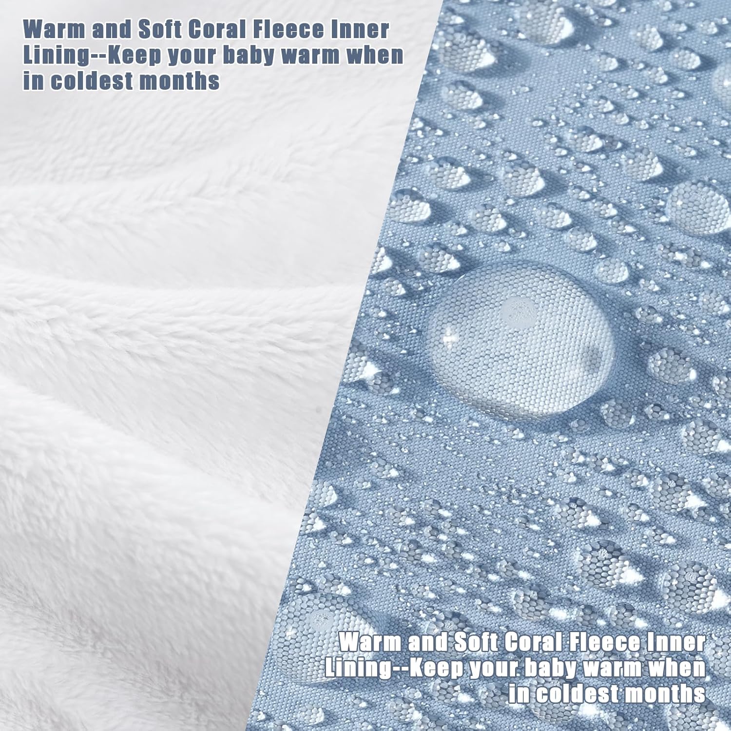 - Cozy Stroller Cover for Winter : Yoofoss stroller footmuff is made of ultra-thick and soft coral velvet lining. Easily pull the drawstring at the top to form a hood to wrap around your baby's head, fully protecting your baby from the cold. No need to prepare a blanket or jacket, your baby still can be wrapped with warmth even during cold weather walks with our stroller winter cover.