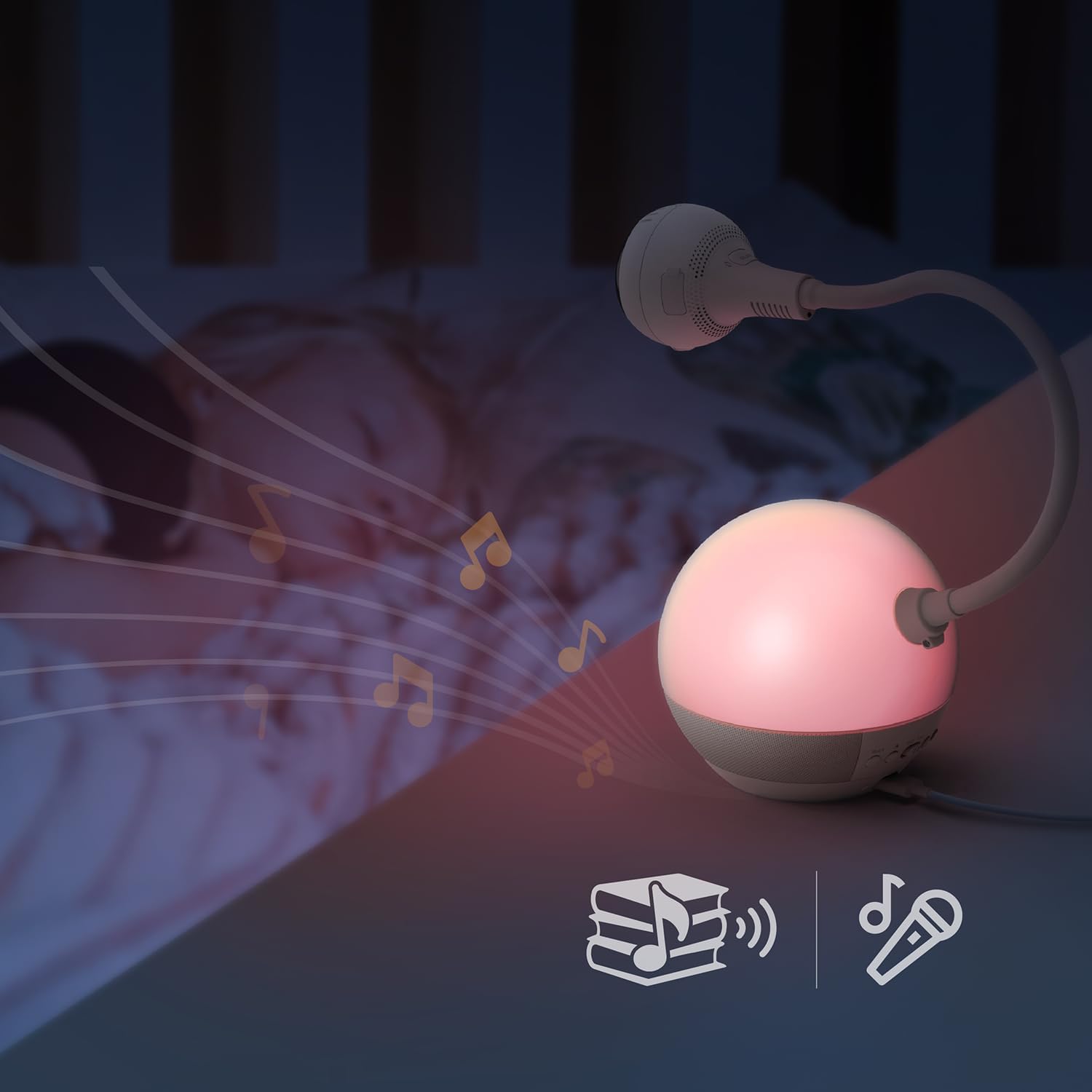- Sleep Trainer – Assisting parents to develop bedtime habits for their little ones. You can program the sleep training routine with nature sounds, or white noise combined with multi-color lights.
