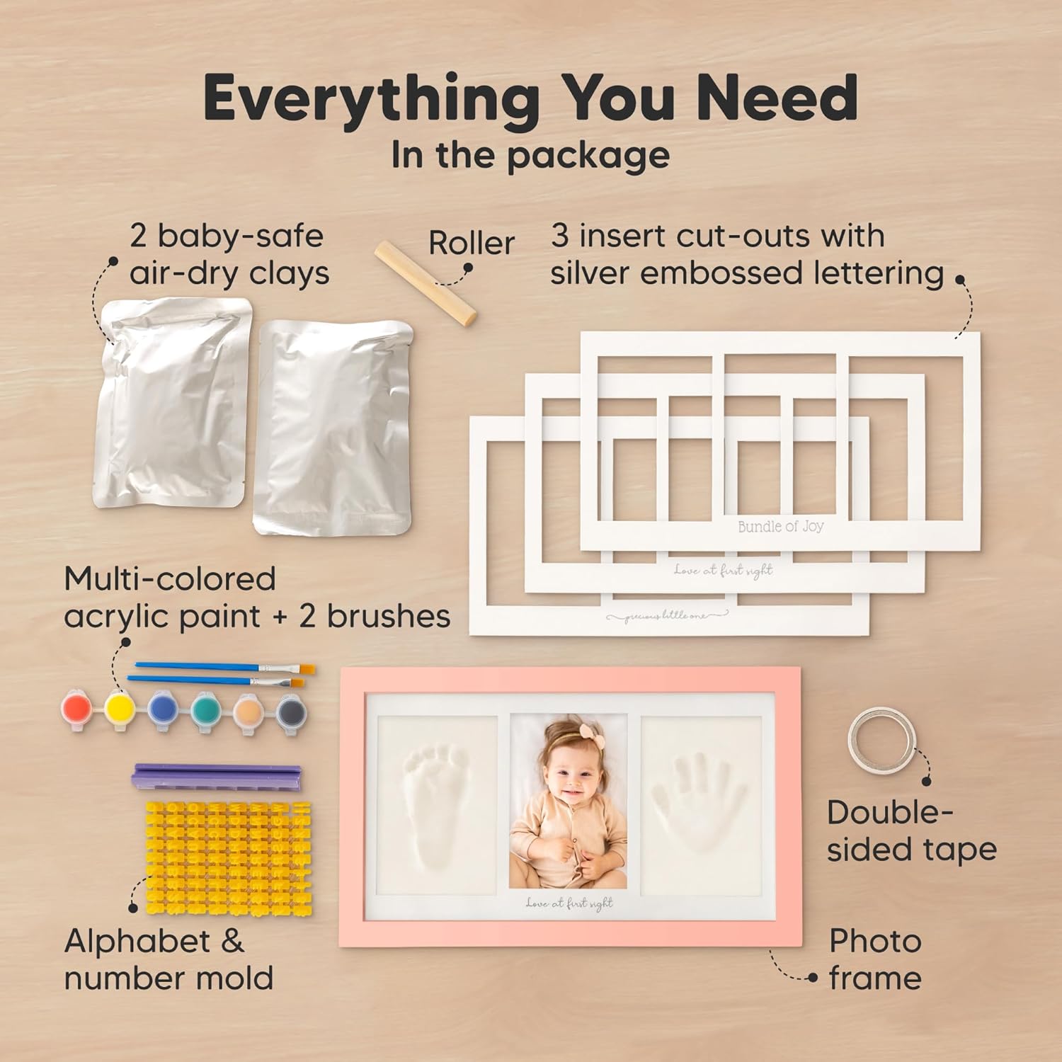 Baby Hand and Footprint Kit - Clay Handprint Keepsake Frame, Newborn Nursery Picture Frame, Personalized New Mom Gifts for Baby Shower & Registry (Sweet Pink)