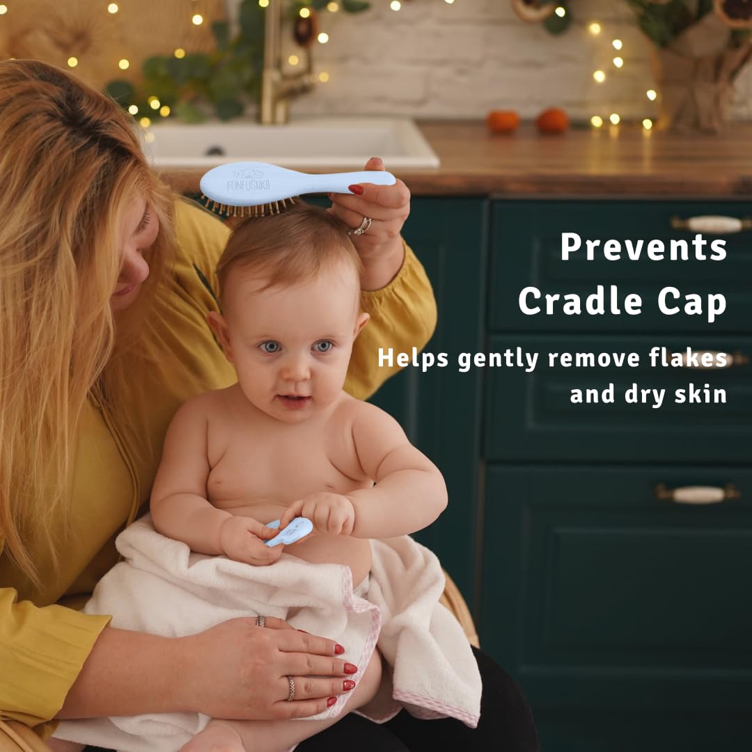 - Prevents Cradle Cap - Funfushka's all natural goat bristle brush provides gentle exfoliation to the baby's scalp. Regular, gentle brushing can help remove the flakes of the cradle cap without causing discomfort or irritation for your little one.