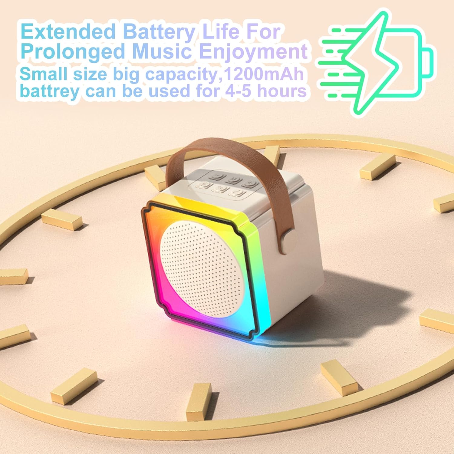 - 6-10 Hours of Playtime: Karaoke machine with a built-in rechargeable battery, this portable speaker offers 5-10 hours of entertainment. The microphone handle has a diameter of only 1.4 inches, making it easy for even a 3-year-old to hold. The soft, smooth edges of the karaoke machine and microphone ensure safety for kids aged 4-10
