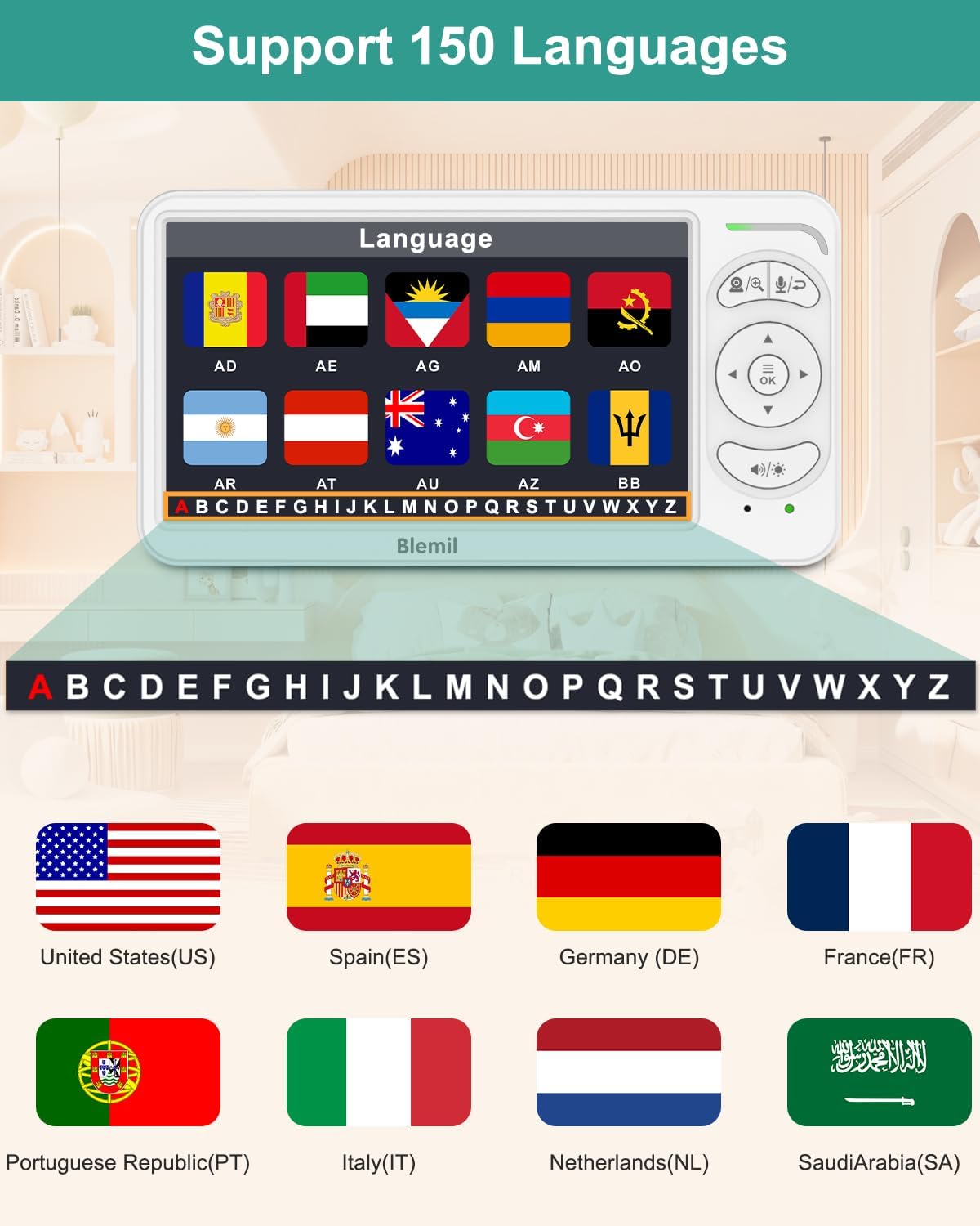 - ăECO mode and cry detectionăBL9064-2 monitors the baby's crying in real time to Respond quickly to the babyâs needs. To hear the sound more clearly, it will only emit sound from one camera while alerting the other. 150 Language interfaces so families worldwide can use the device without language barriers can be used â a caring protection without borders.