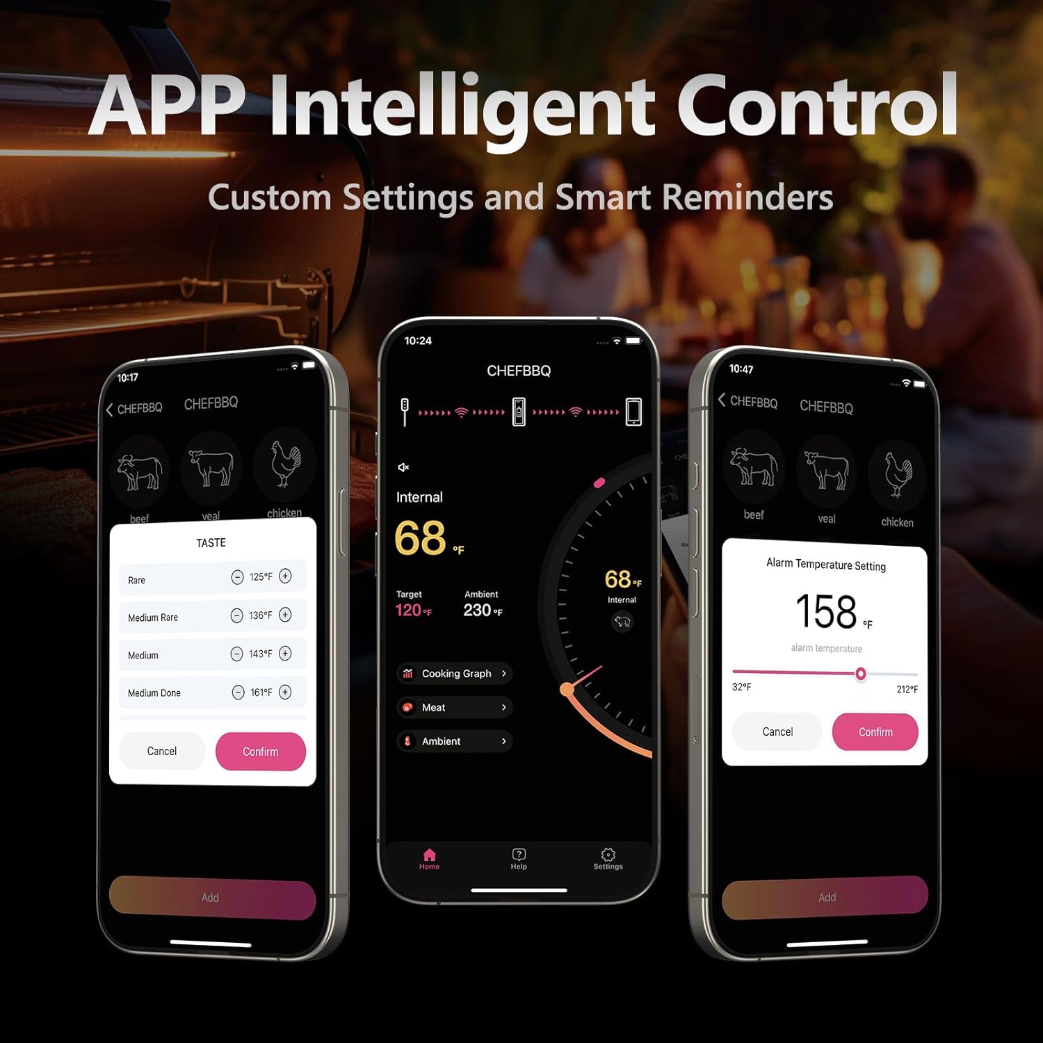 - 【Smart APP Monitoring】CHEFBBQ APP of our digital meat thermometer allows you to preset temperatures and doneness for various meats and it also offers alert and notification settings. It will be a nice gift for Christmas