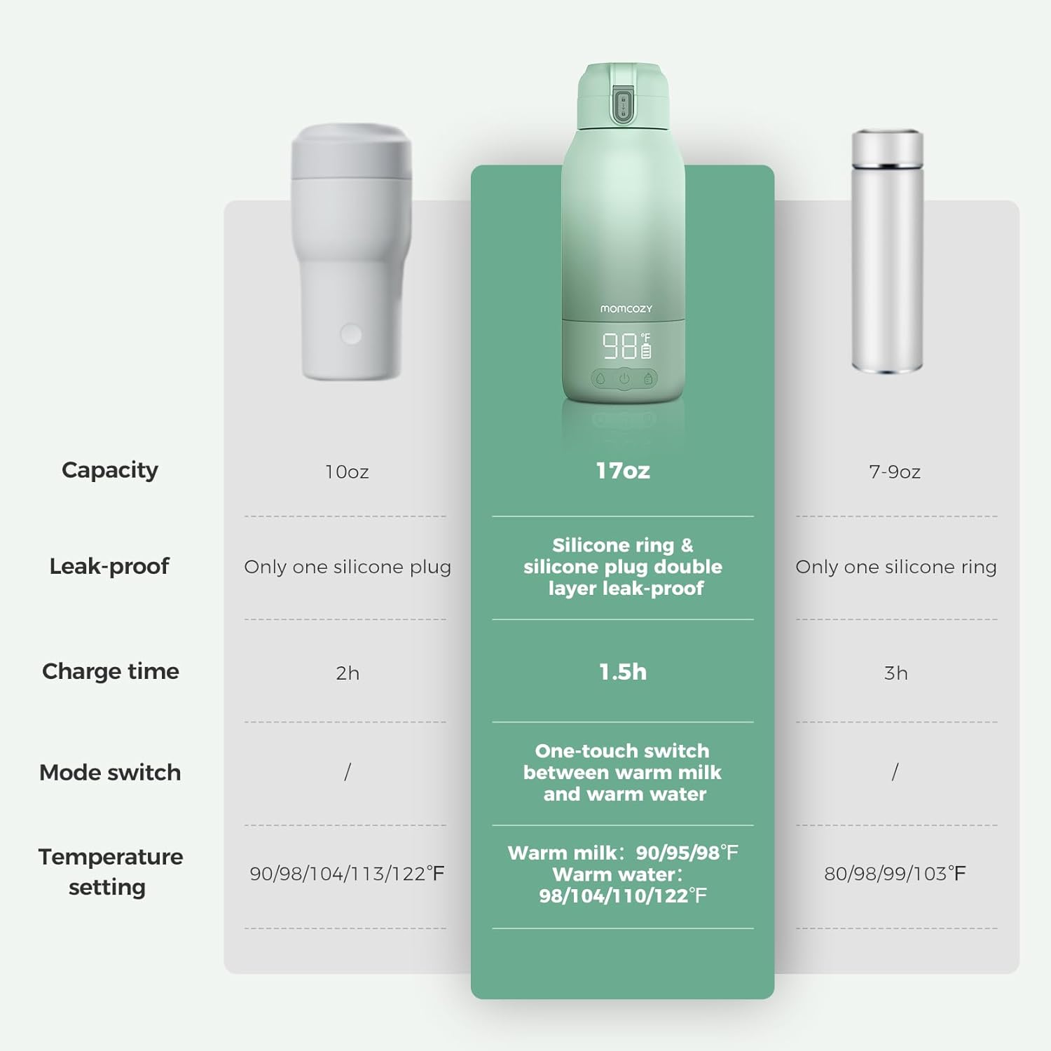 Momcozy Portable Milk Warmer for Travel – Dual Heating Modes for Breast Milk & Water, Portable Bottle Warmer with Fast Heating & Long Battery Life, 17 Ounces Large Capacity to Meet Your All-Day Needs