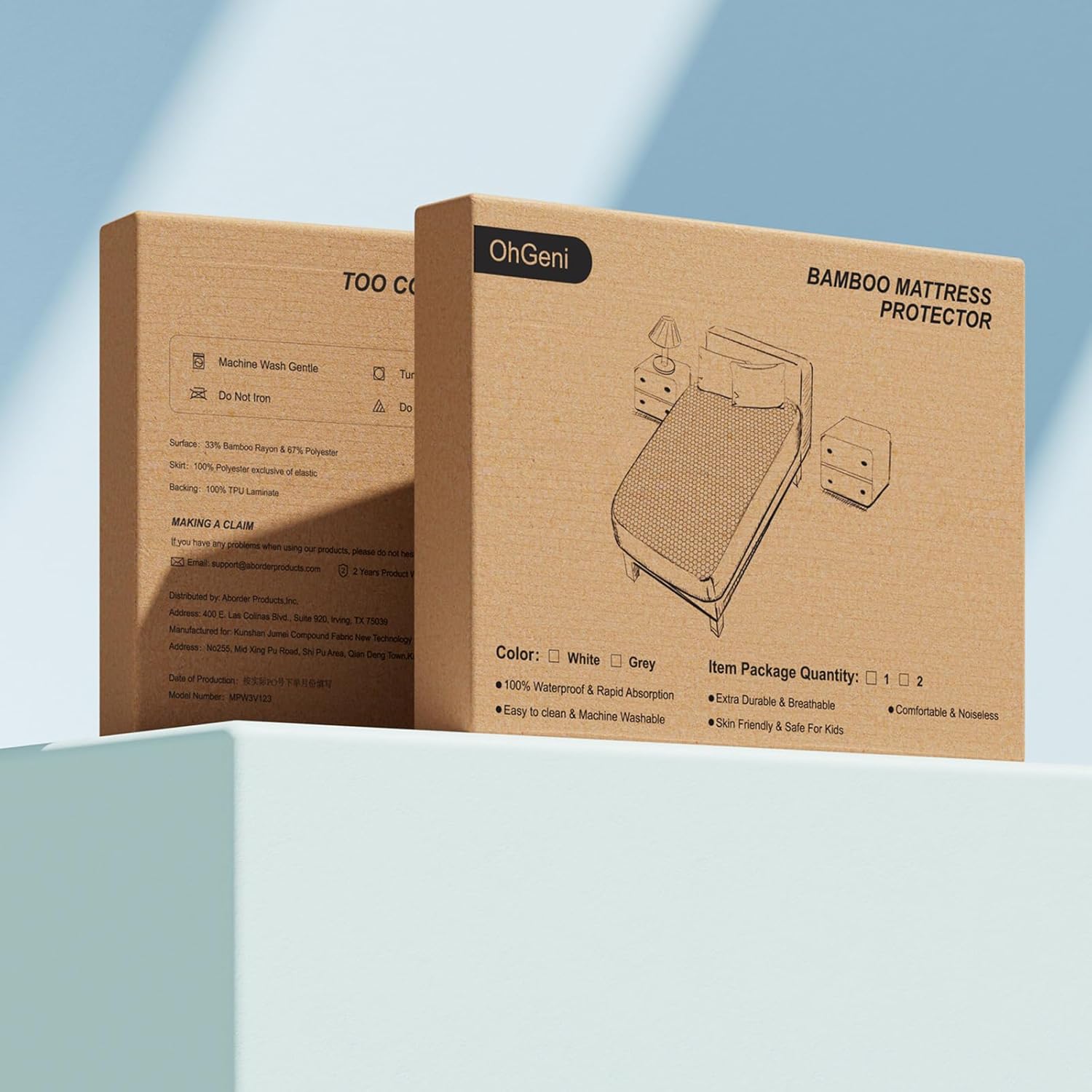 OhGeni 100% Waterproof Mattress Protector, California King-Gray Mattress Pad, Fits 6"-20" Mattresses with Deep Pocket, Cooling, Breathable Fitted Sheets, Soft Bed Cover, Noiseless, Machine Washable
