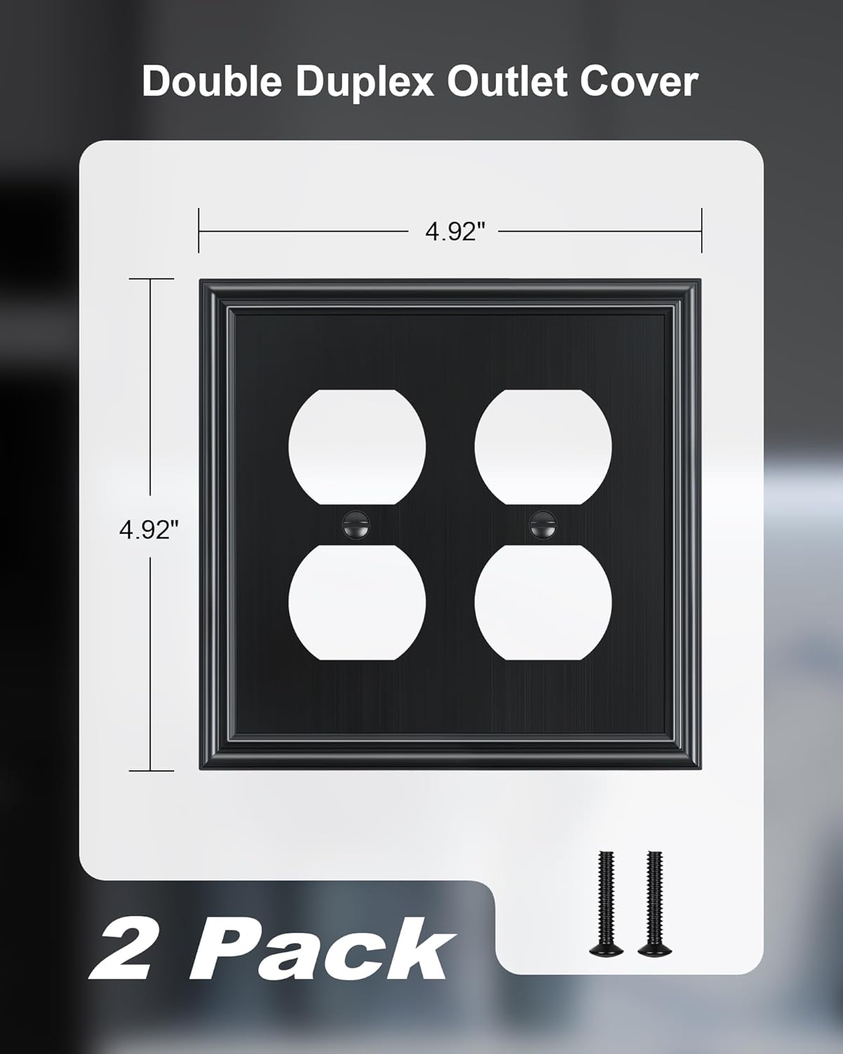 - Specification - Pack of 2 double duplex metal wall plates, size at 4.84''W*4.92''H. Easy replacement of any wall plate with the same configuration, making it a convenient choice for remodeling or upgrading your home. Backed by a one-year warranty to ensure your peace of mind and complete satisfaction.