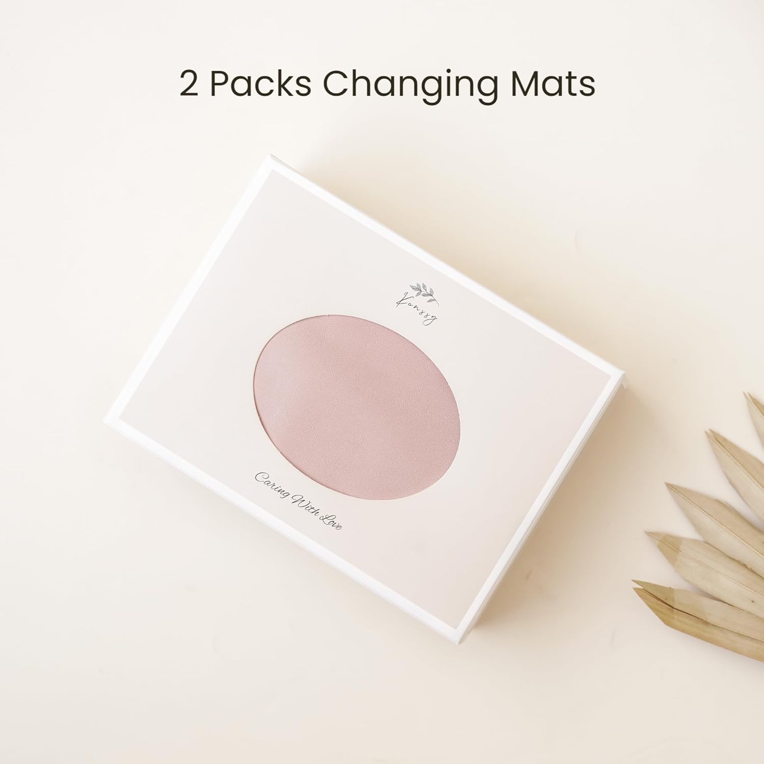 Konssy Faux Leather Baby Changing Mat 2 Pack, Waterproof, Wipeable & Portable Diaper Changing Pad for Travel or Home, Foldable Mat Fits Perfectly in Diaper Bag, 30 x 17 inches (Blush,Beige)