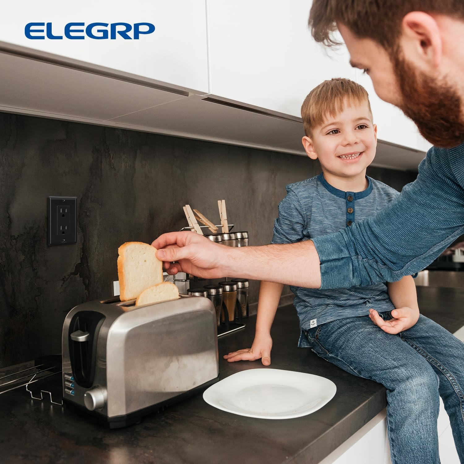 ELEGRP Decorative Receptacle Wall Plate, 1-Gang Mid Size Decorator Covers, Unbreakable Polycarbonate Faceplates for Decorator Device, UL Listed, Screws Included (1 Pack, Glossy Black)
