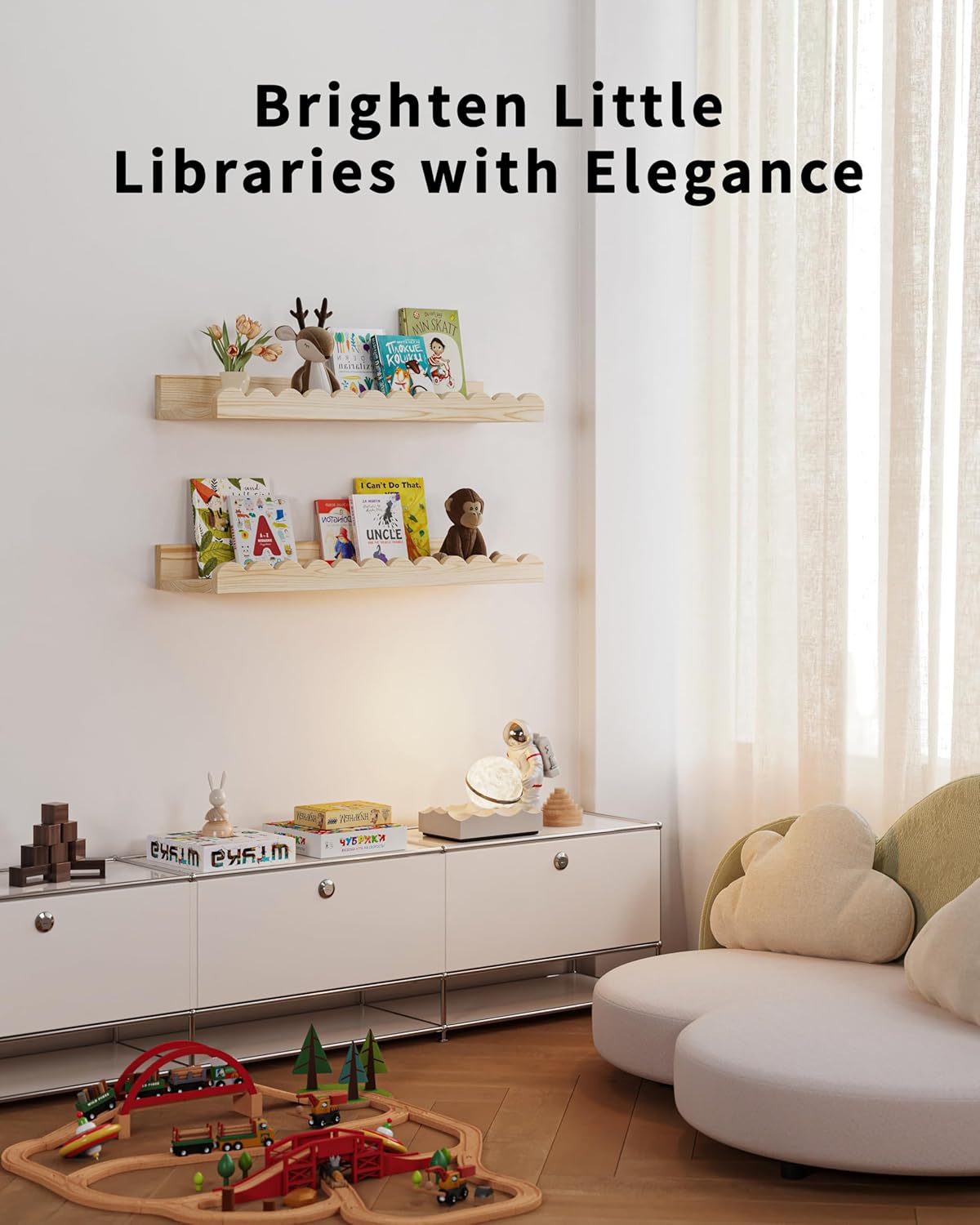 - High-Quality Wood: Crafted from premium hardwood, our wall-mounted bookshelf ensures durability and a long-lasting finish, making it a reliable addition to any child's room