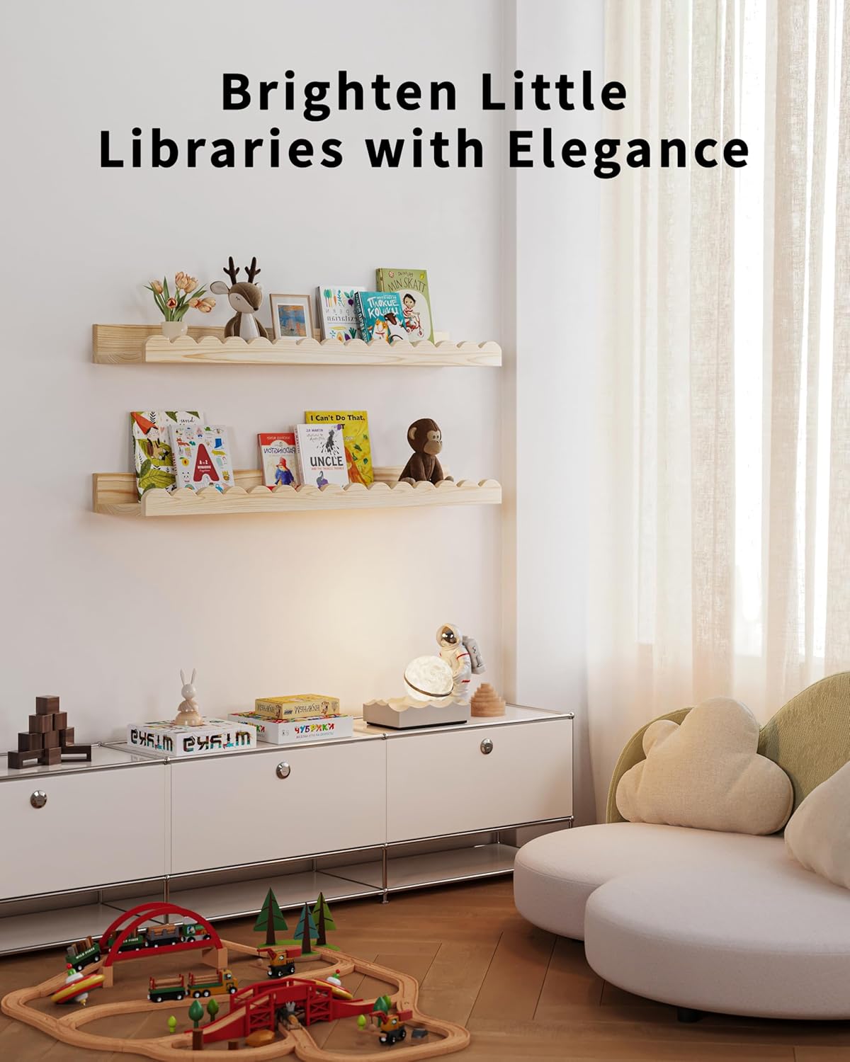 - High-Quality Wood: Crafted from premium hardwood, our wall-mounted bookshelf ensures durability and a long-lasting finish, making it a reliable addition to any child's room
