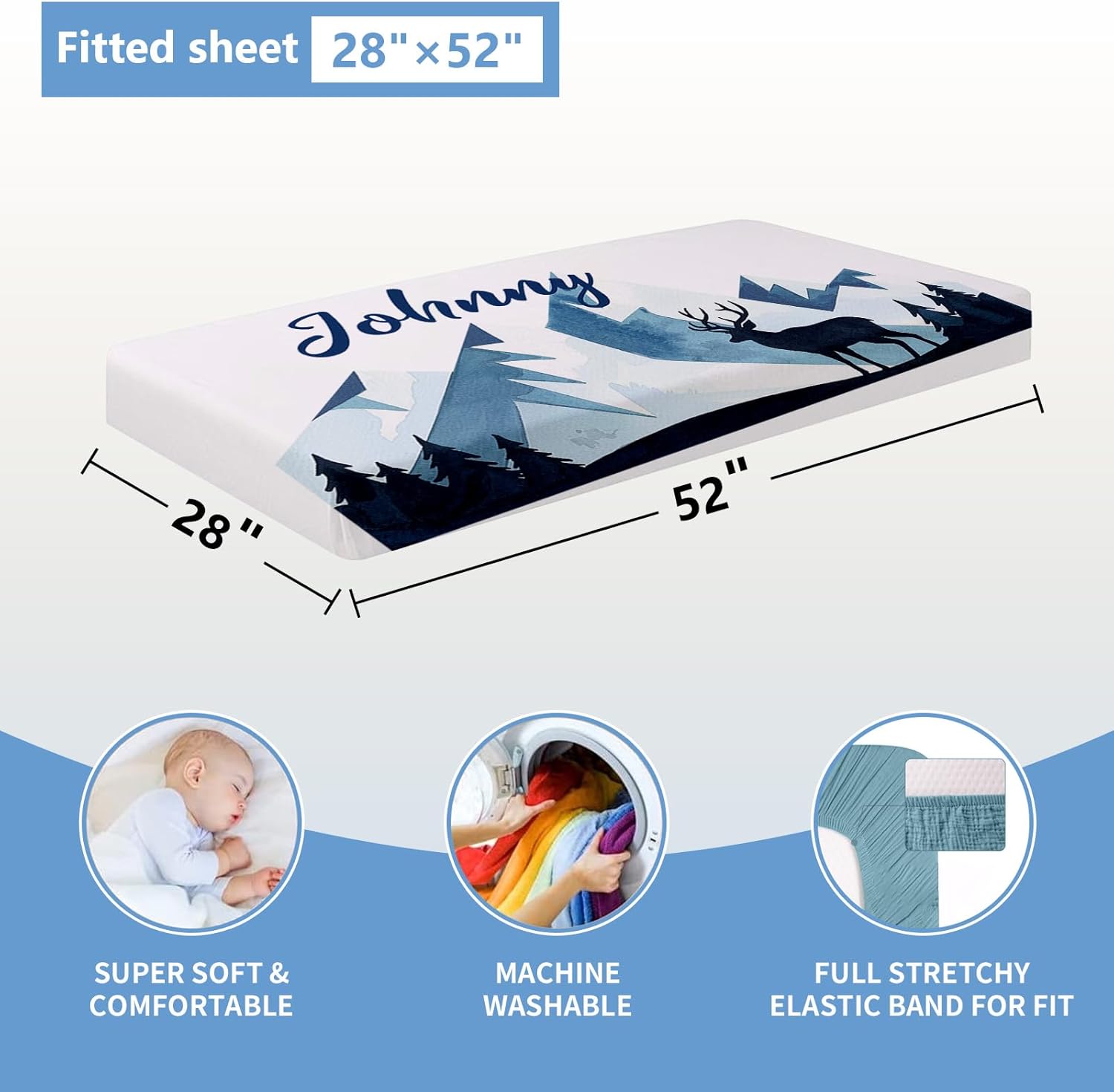Custom 5-Piece Baby Crib Bedding Set, Personalized Name for Toddlers, Blue Deer Nursery Set for Boy Girl, Double Layer Infant Crib Set, Customized Gifts