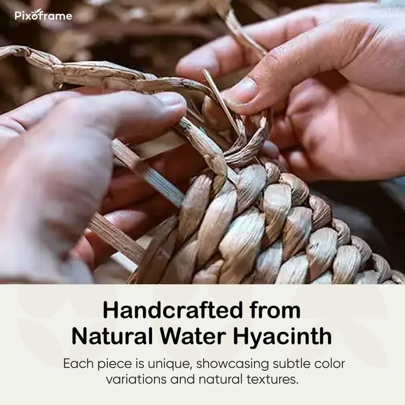 - Handcrafted from Natural Water Hyacinth: Made from 100% natural water hyacinth, this basket brings a rustic touch to your decor. Each piece is unique, showcasing subtle size variations and natural textures, making it a beautiful addition to any setting.