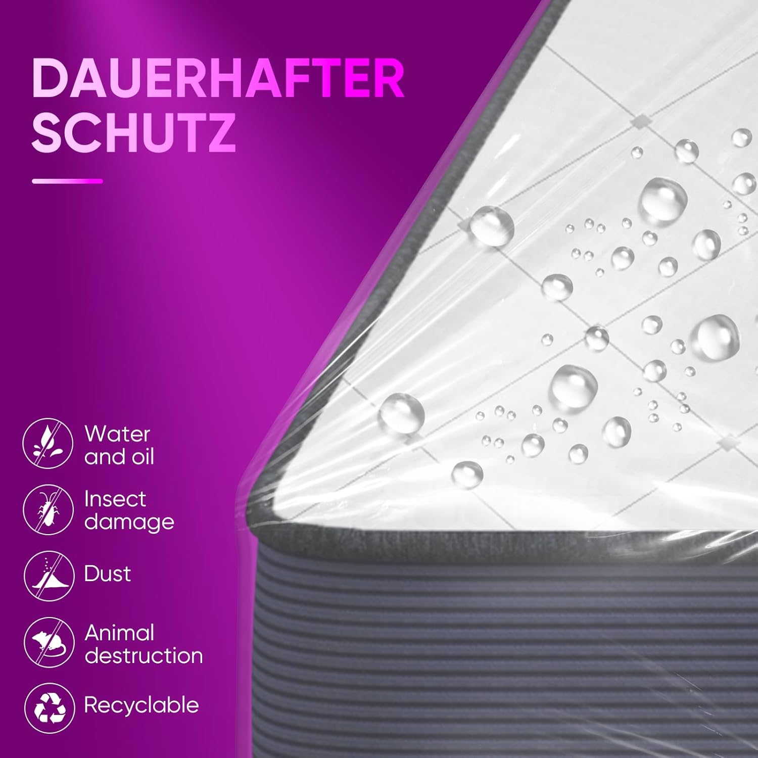 ZCHENBS® – Mattress Bags for Moving and Storage,Mattress Bag with Zippers,5 Mil Ultra-Thick Bed Bag,Waterproof,Anti-Tear,Heavy-Duty Mattress bag (Tansparent/Purple, Queen-(1 Pack))