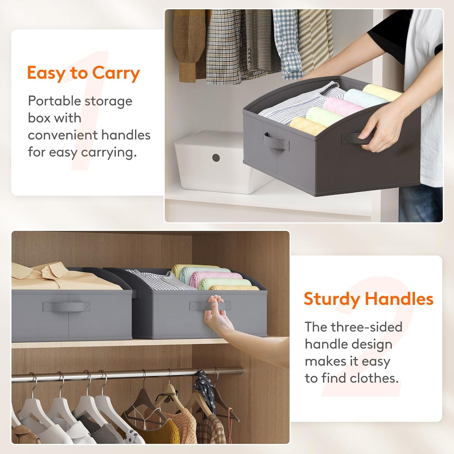 - Premium Material: Crafted from high-quality non-woven fabric, these closet organizer bins are supported by thick cardboard on the sides and bottom, ensuring a sturdy structure that resists deformation. This robust construction guarantees long-term use and excellent load-bearing capacity. Additionally, the bins are foldable, allowing for space-saving storage when not in use.