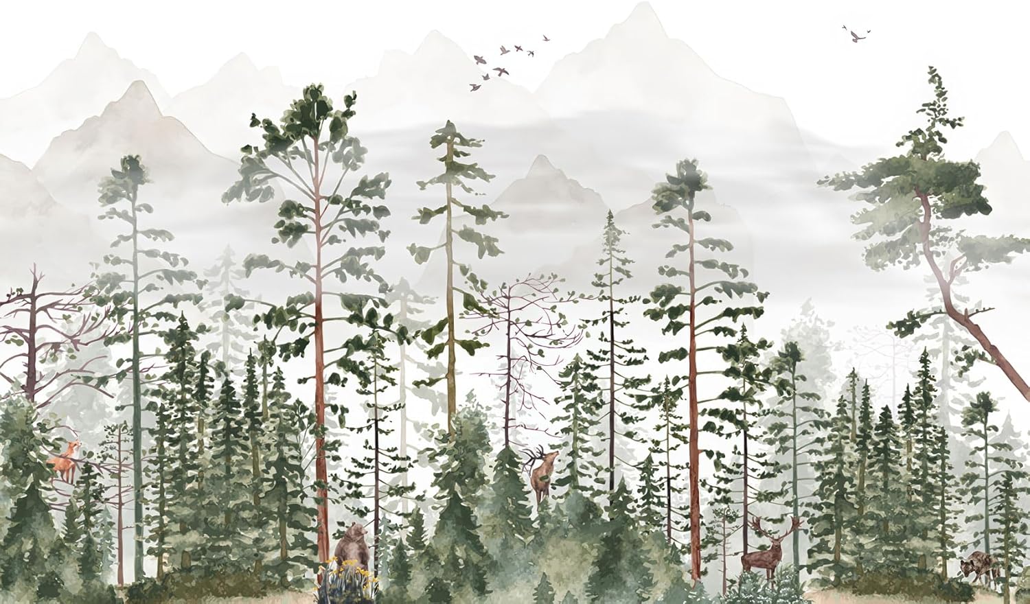 Green Forest Woodland Wallpaper Wall Mural for Nursery Room Girls Room Boys Room(Not Self-Adhesive)