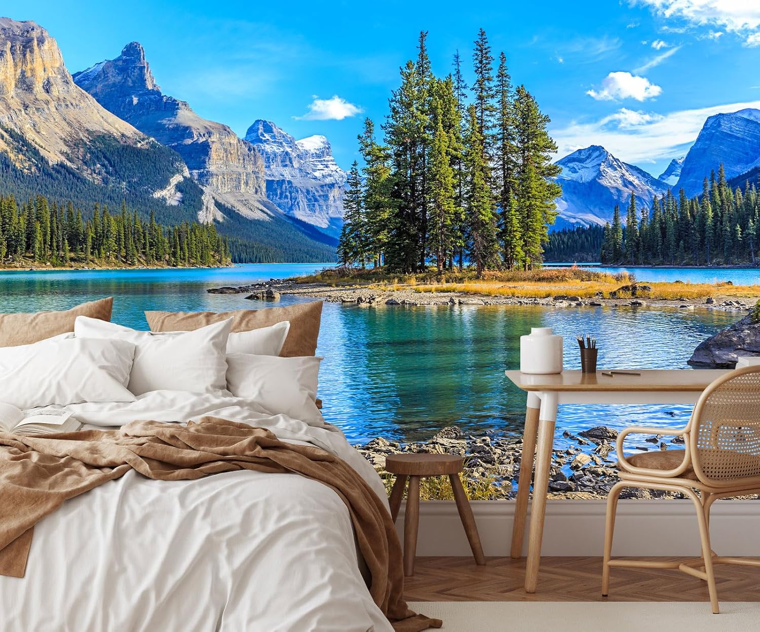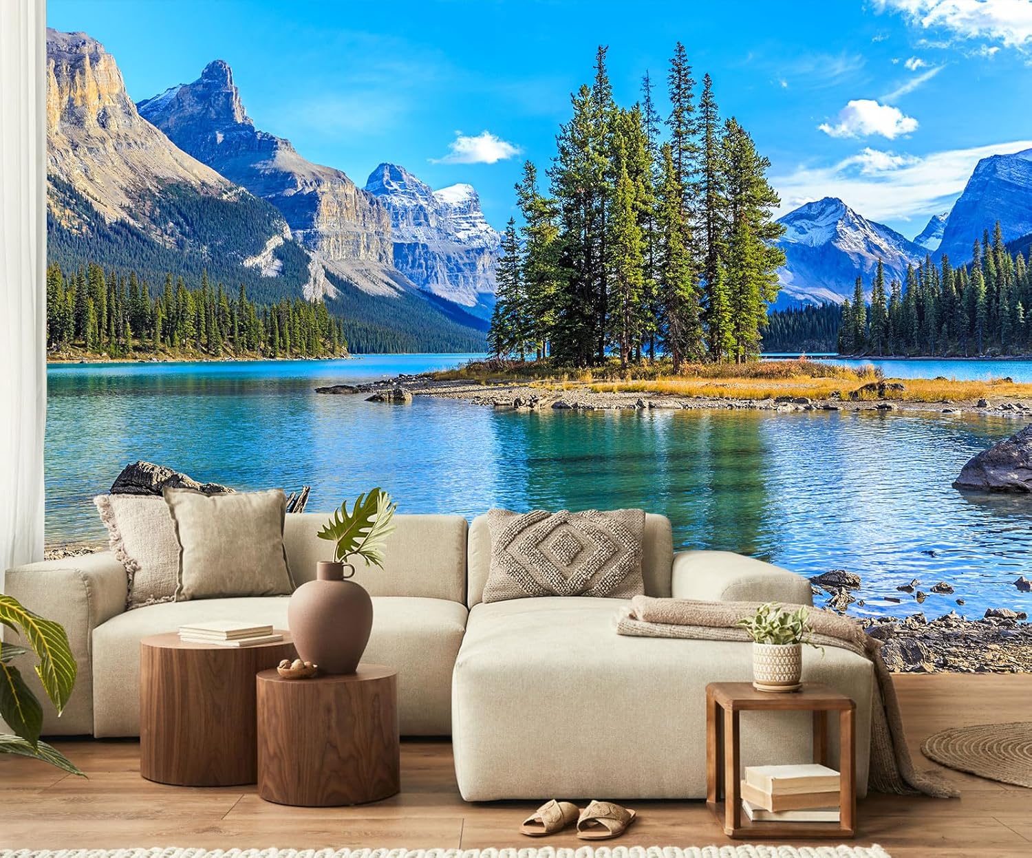 Nature Landscapes Mural Wallpaper Lake Mountain Tree Wall Mural for Bedroom Living Room Basement(Not Self-Adhesive)
