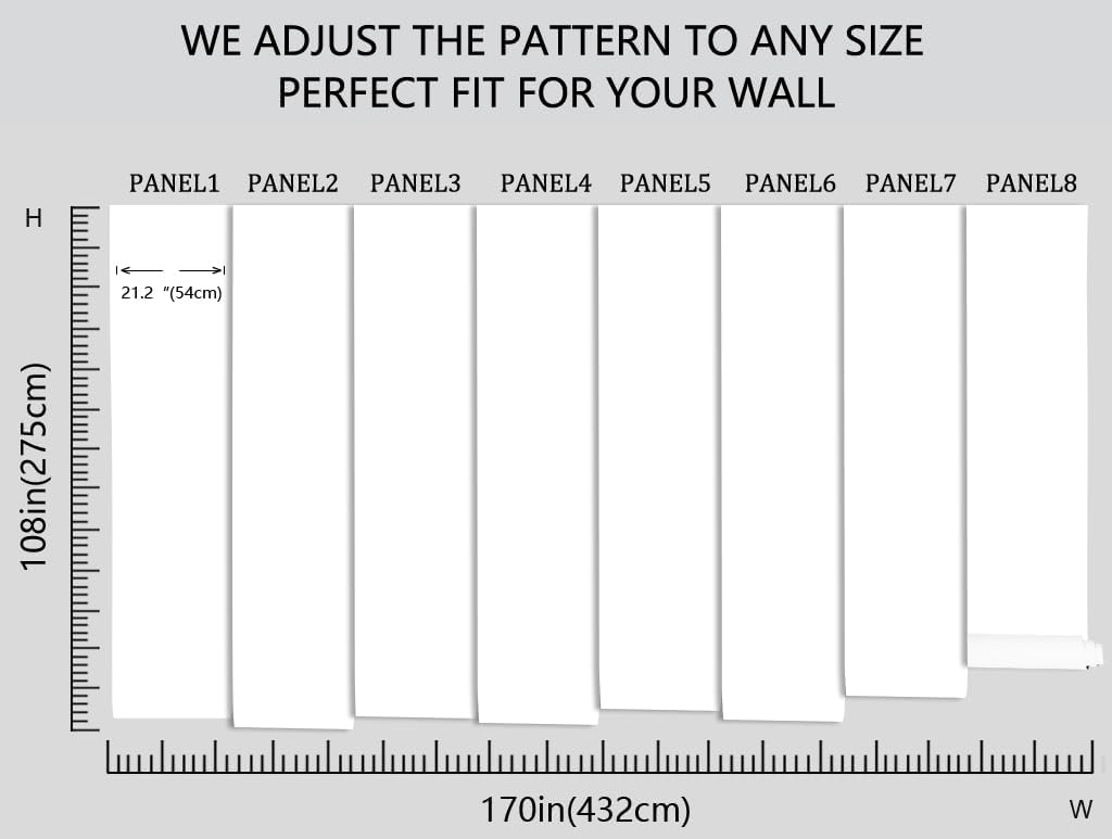 - Before purchasing, you need to measure the size you need, our mural is 108 inches high and 170 inches wide, in order to facilitate long-distance transportation, we divide the width of the mural into six pieces of 21.2 inches each, with a numerical serial number underneath each piece for easy installation!