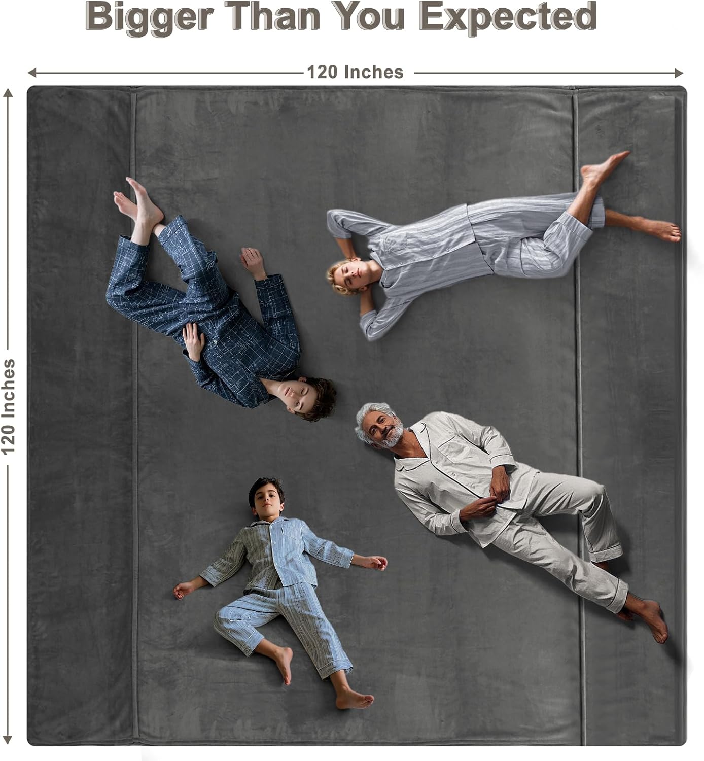 - Extra Large Size Blanket: Measured by 120"x 120", It's Bigger than you can imagine, Nearly double the size of a standard king-size blanket, which means it can surround you and your families with just one blanket.