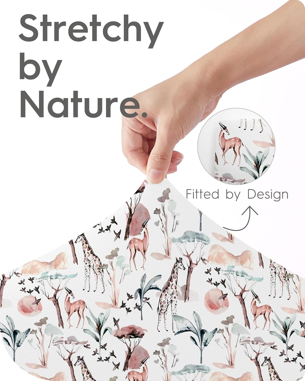 Extra Stretchy Changing Pad Cover, TotBasic Ultra Soft Premium Jersey Knit Changing Pad Sheets, Pink Prints for Baby Girls, Fits All Standard Changing Tables/Dresser Tops - 2 Pack (Whale + Giraffe)