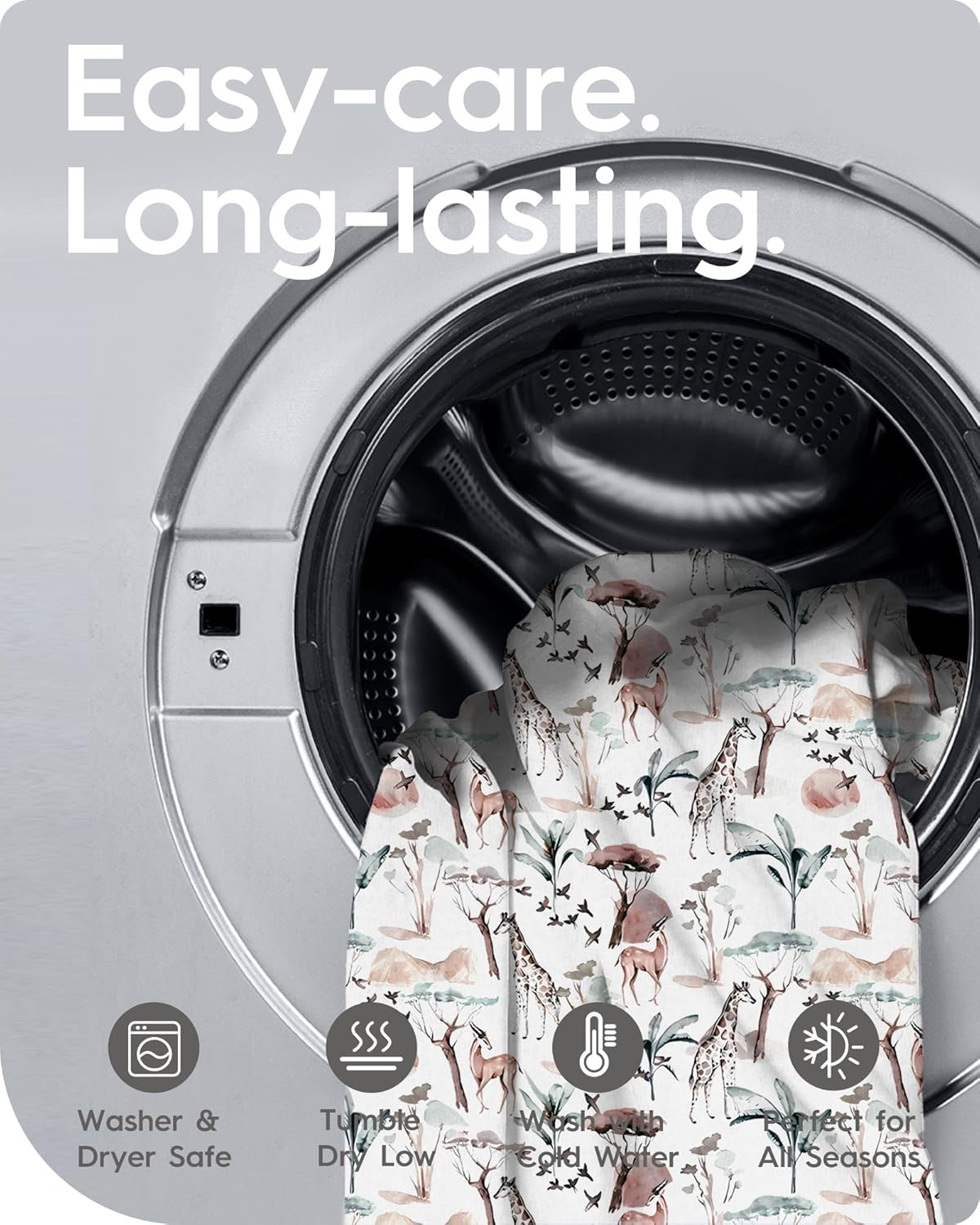 - WASH DURABLE & EASY-CARE: Made with high quality and durable fabric, our baby changing table covers can be easily cleaned to ensure a safe and hygienic sleeping environment for your little one. To care for these sheets, simply machine wash them in cold water on a gentle cycle and tumble dry on low heat. They won't fray, fade, or shrink, even through multiple washes, so you can trust that they'll continue to provide a comfortable and safe sleeping environment for your baby.