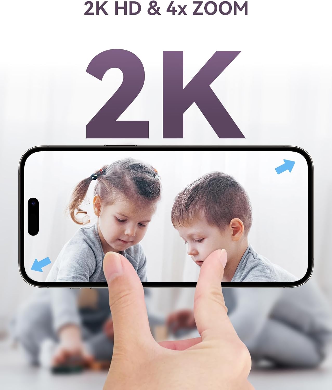 - 【2K HD Resolution & 4X Zoom】 This product features a 3.6mm wide-angle lens and a high-quality CMOS sensor, providing stunning 2K high-quality visuals. Even in low light or at night, it captures incredible details. With 4x zoom, you can easily observe subtle movements, including your baby's breathing. Enjoy unparalleled clarity and peace of mind while keeping an eye on your little one.