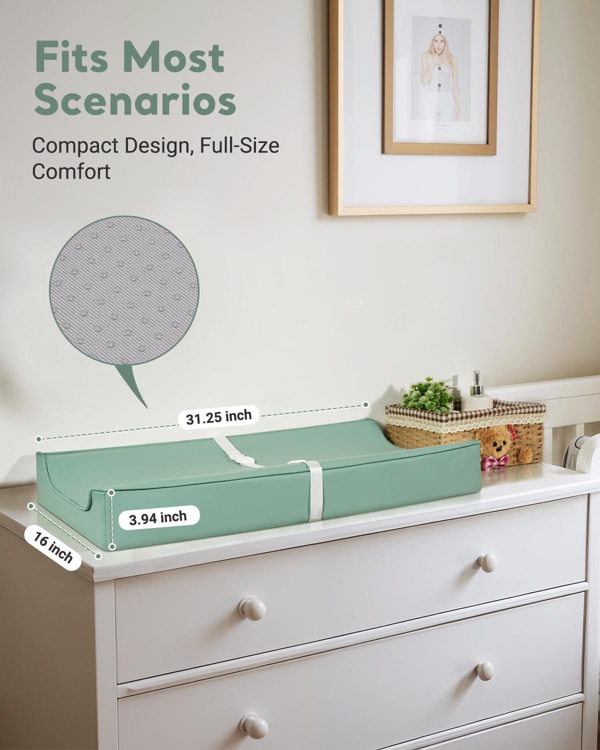 - Ultra-Thick & Non-Slip Safety: 4-inch extra-thick foam provides cushioning comfort, while the non-slip back keeps the pad securely in place on any surface—ideal for dressers, cribs, or travel