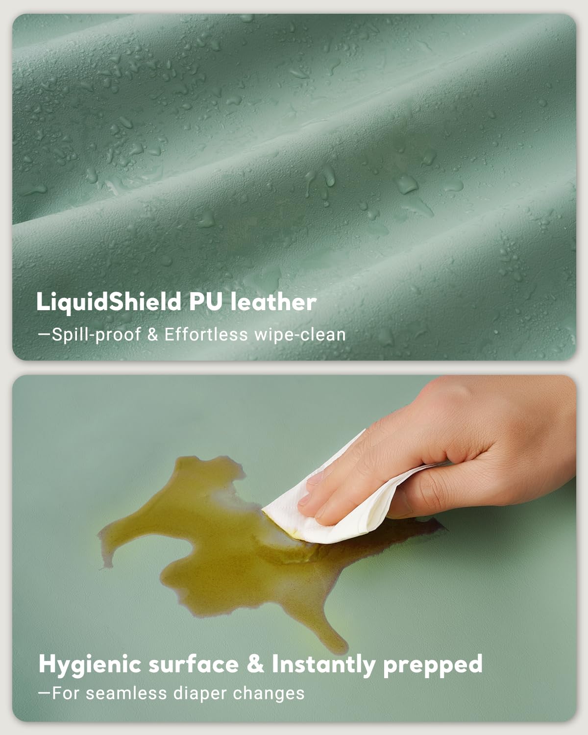 Vegan Leather Waterproof Baby Changing Pad - Wipeable, Extra Thick & Portable & Non-Slip Diaper Mat for Dresser, Crib, Travel | Soft & Safe (Green)