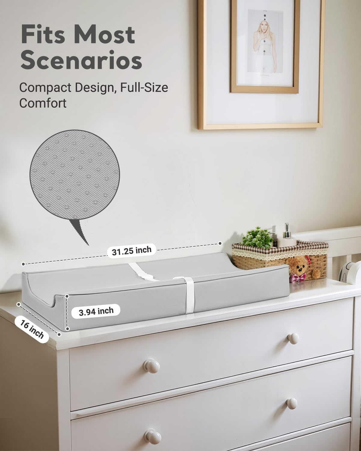 - Large Size & Easy Maintenance: Generous 31”x16” size accommodates newborns to toddlers. Replaceable cover and waterproof core ensure hassle-free cleaning for busy parents