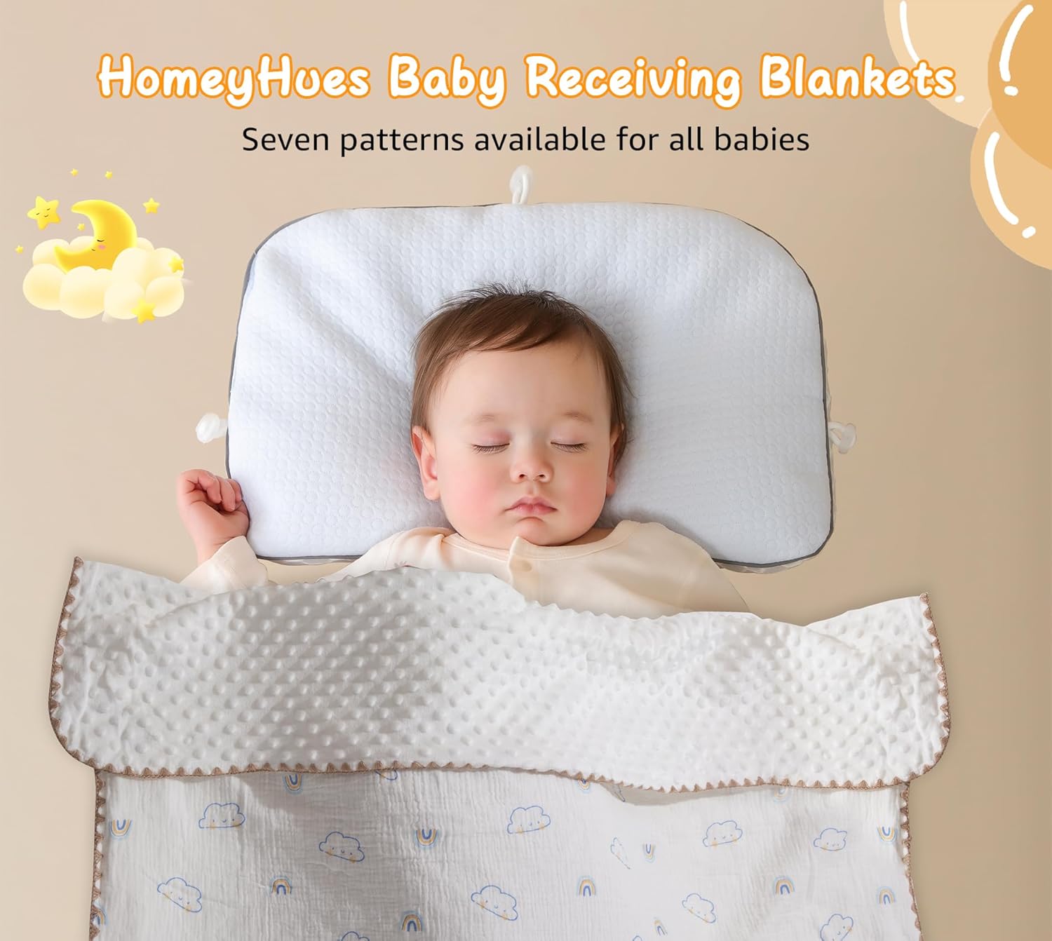 Baby Blanket Double Layer Cotton 40 x 40 Soft Receiving Blanket with Pattern Machine Washable Cloud