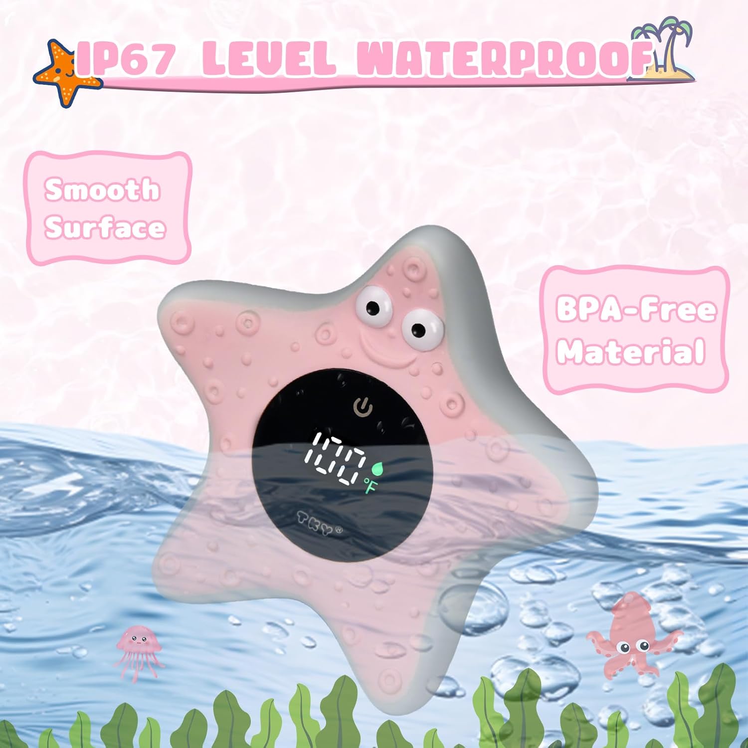 TKY Baby Bath Thermometer with Floating Toys - Digital Water & Room Temperature Monitor, Rechargeable Thermometer with Alerts for Newborn Bath Essentials, Infant Safety