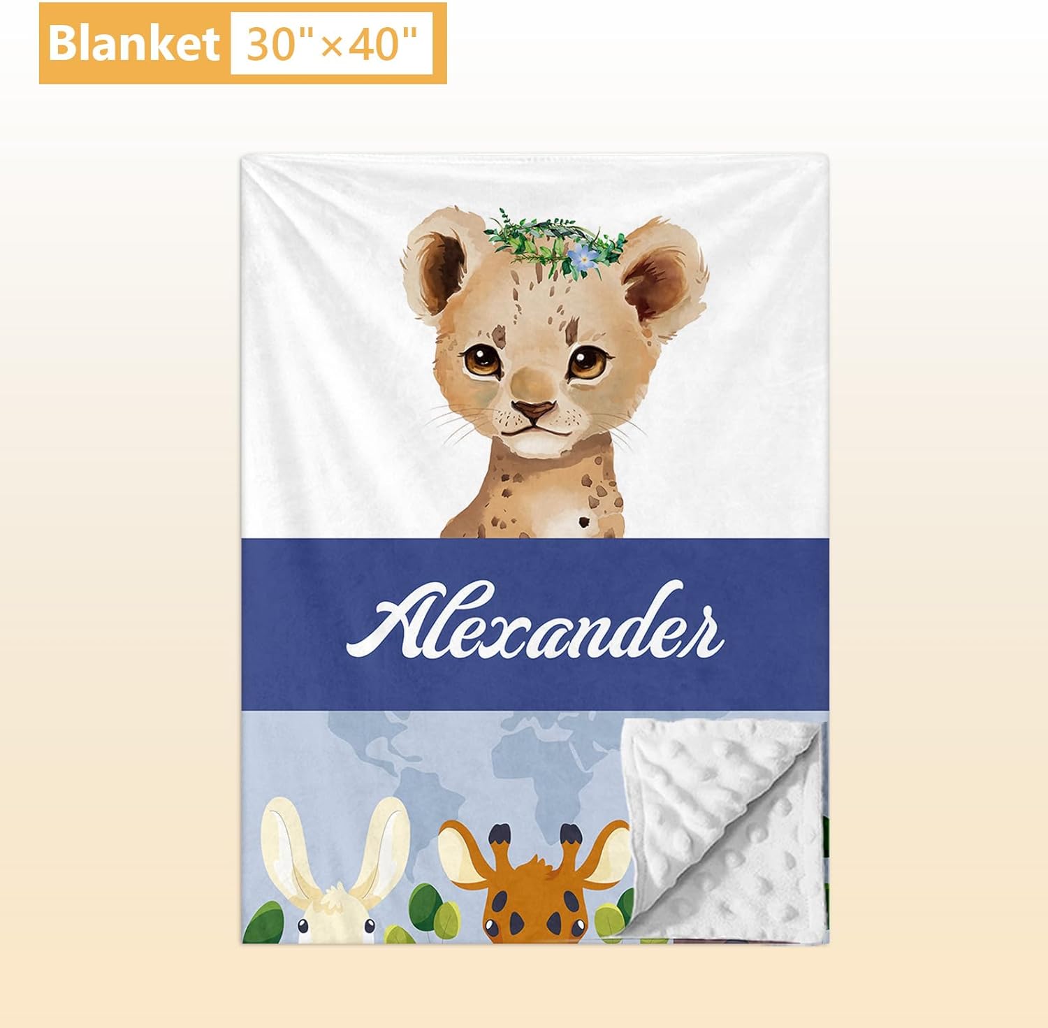 - Complete Set: This customized baby bedding set includes a double layer dotted backing blanket, crib sheet, changing pad cover, baby rug and wall arts, designed to add style and comfort to your nursery. The dotted backing of the double-layer blanket will be adored by your little one.
