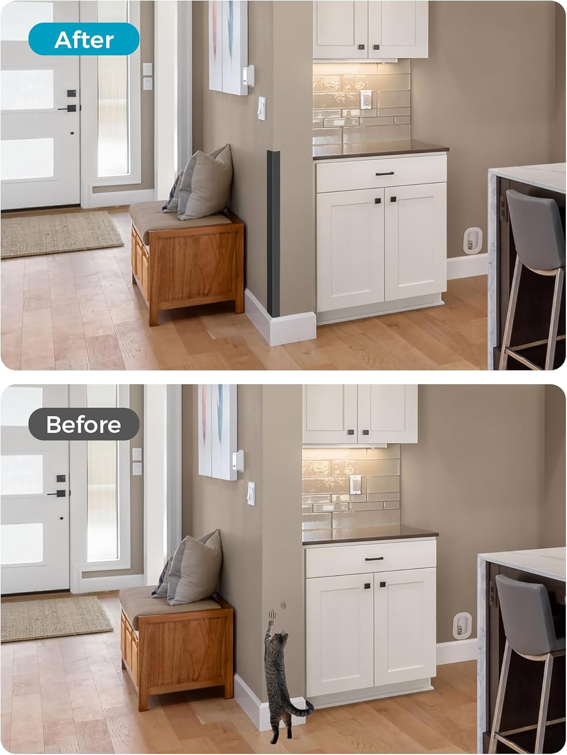 - 【Effortless Installation and Removal】Installation is a breeze. Our corner protectors come with double - sided pre - stickers. Simply peel off the protective film and stick them onto any clean surface, whether it's wood, metal, tiles, or damaged paintwork. During removal, there's no sticky residue left behind, and it won't damage the surface, protecting your walls from scratches and pet bites