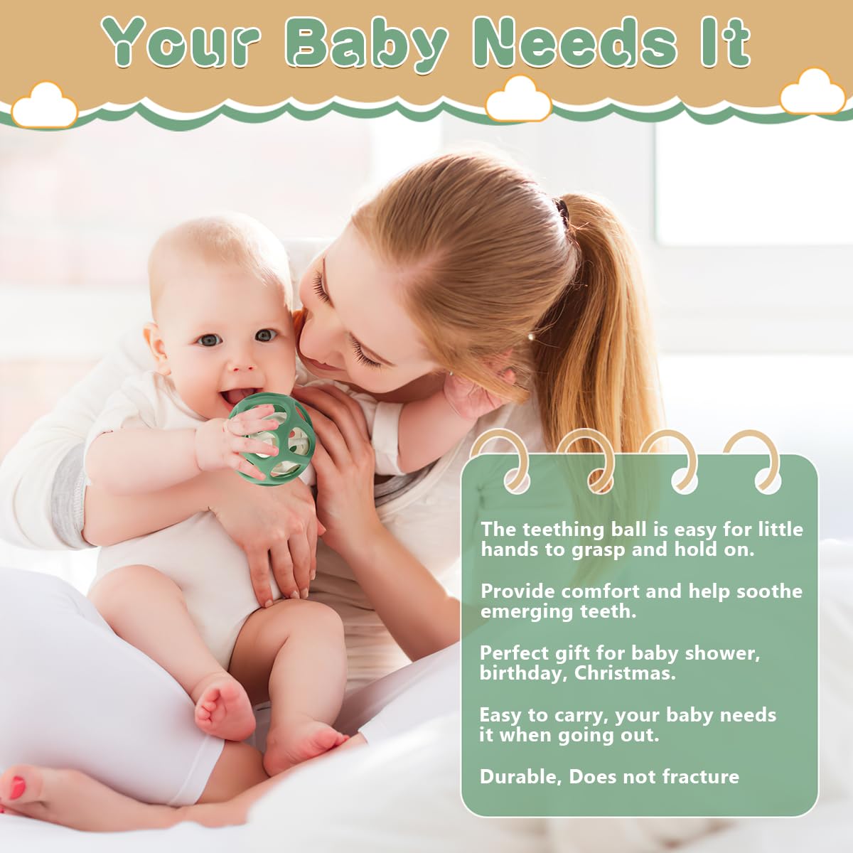 - 【Easy to Grasp & Hold】Designed with tiny hands in mind, this baby ball toy features a size and finger holes that's easy for infants to grasp, promoting motor skill development and sensory exploration. All teether balls do not have small part plugs to avoid the danger of choking hazard. Weight: 76g/2.68oz