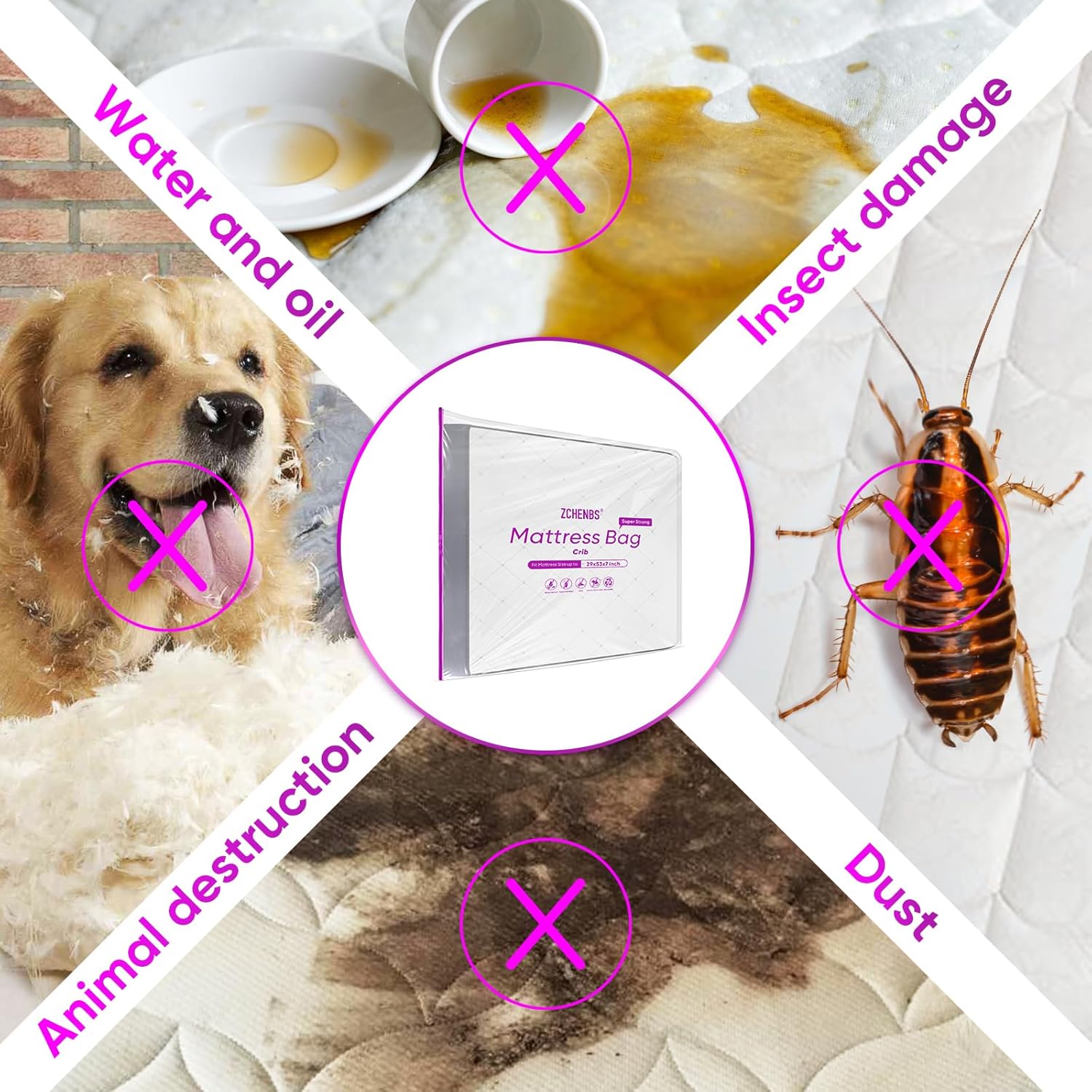 ZCHENBS® – Mattress Bags for Moving and Storage,Mattress Bag with Zippers,5 Mil Ultra-Thick Bed Bag,Waterproof,Anti-Tear,Heavy-Duty Mattress bag (Tansparent/Purple, Crib-(1 Pack))