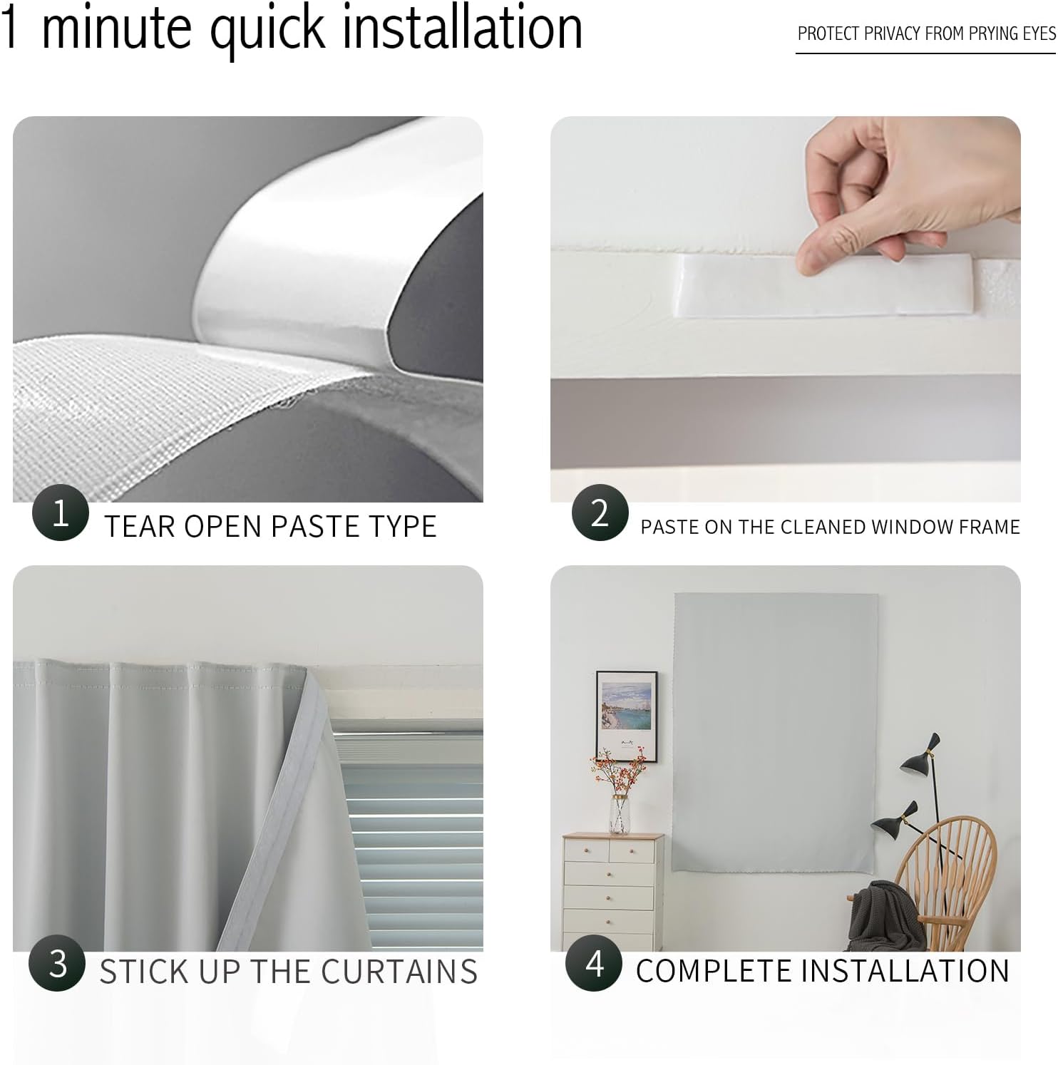 - Superior Light Blockage and Privacy: Experience the ultimate in light blockage with our self adhesive curtains. These adhesive curtain panels effectively block out sunlight, ensuring privacy and creating a comfortable sleeping environment.