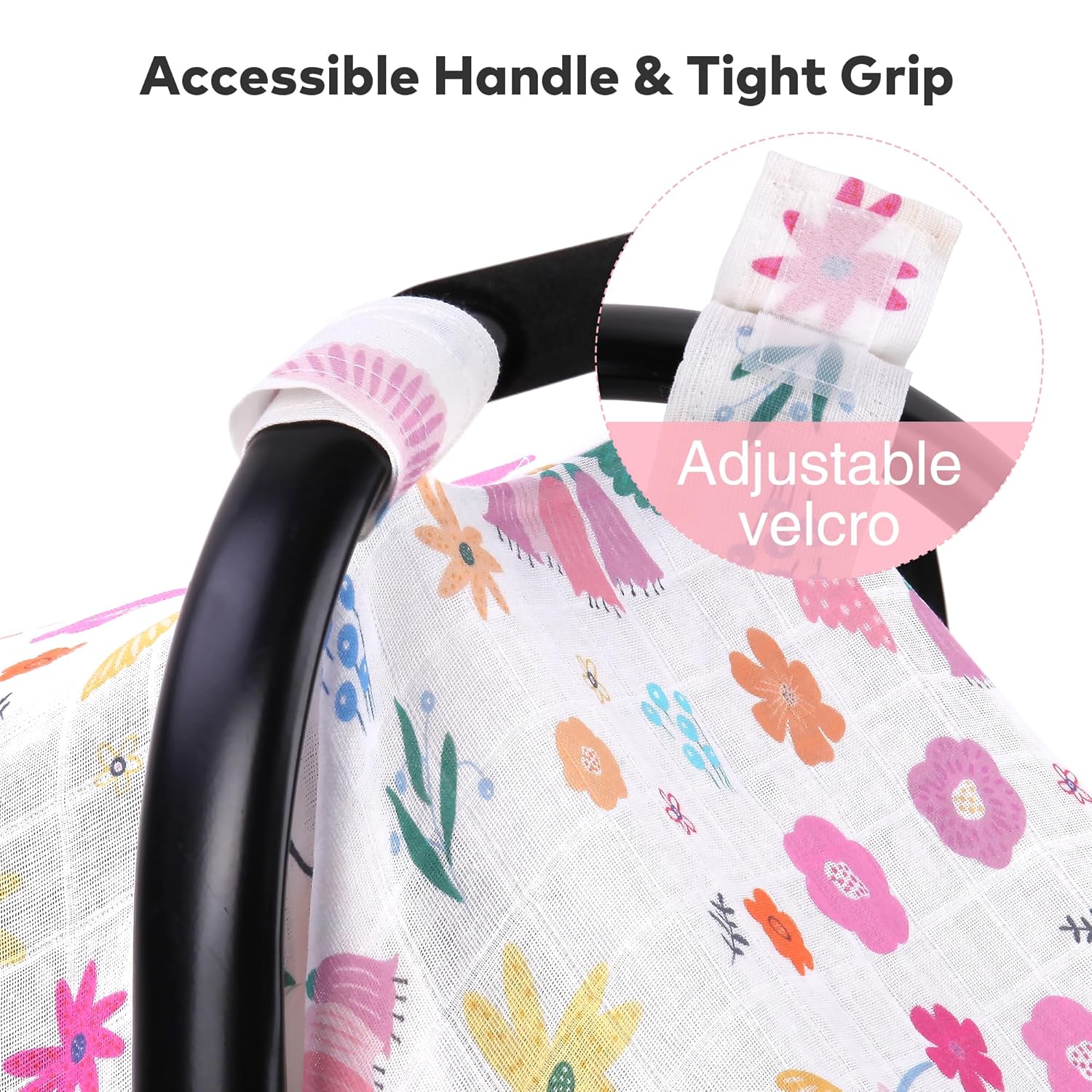- EASY TO USE: No snaps that may fall off or tear the fabric. No noisy zips either. Adjustable velcro straps secure the cover up on your baby car seat handle. Gives you full access to the handle for a firm grip. You donβt have to worry about it falling off and still easy to monitor your baby