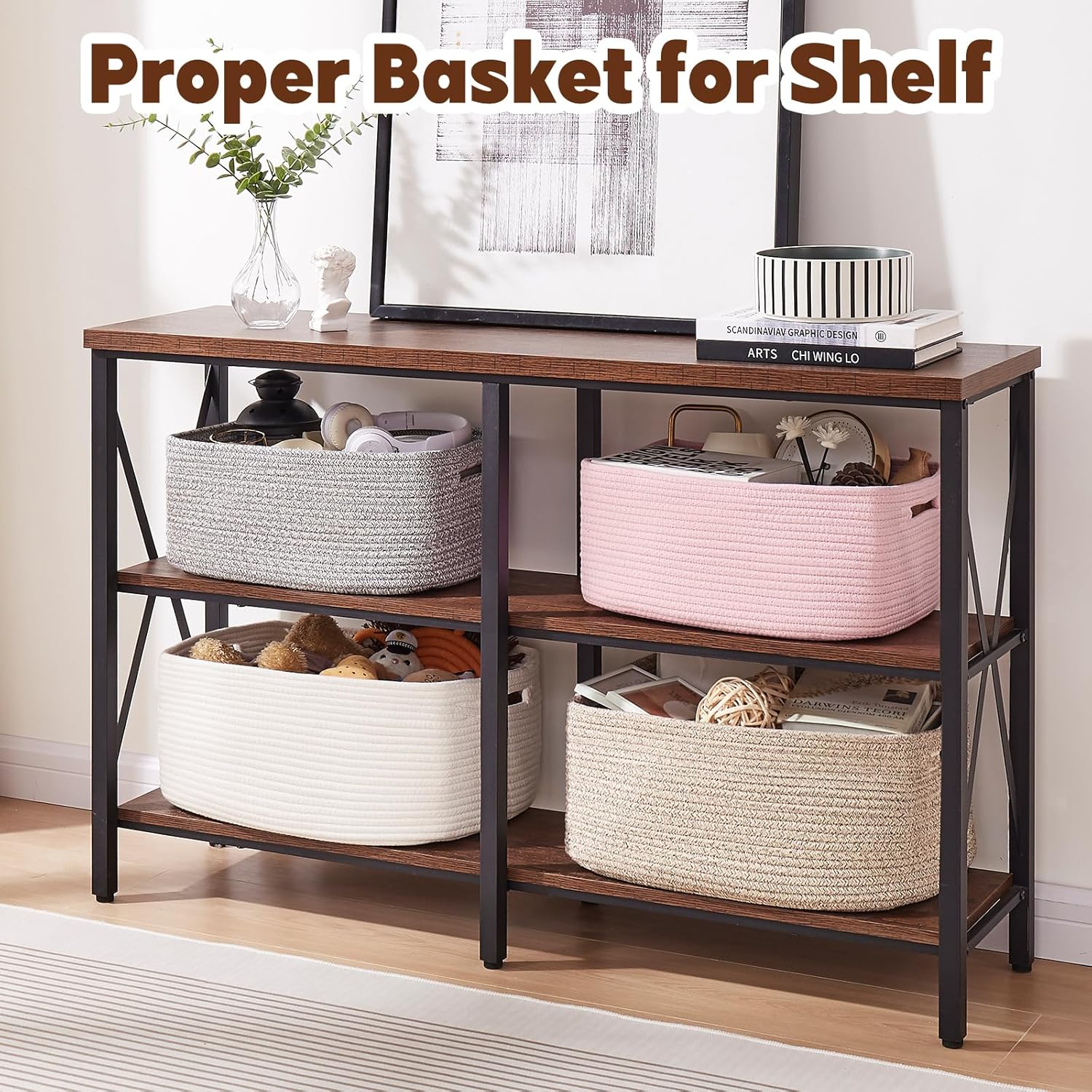 OIAHOMY Storage Basket for Shelves, Closet Cube Storage Bins Baskets for Clothes Blanket Towels, Baby Nursery, Toy Baskets Box, Woven Rope Basket, 17.72*12.99*7.87 IN, 2 Packs Brown