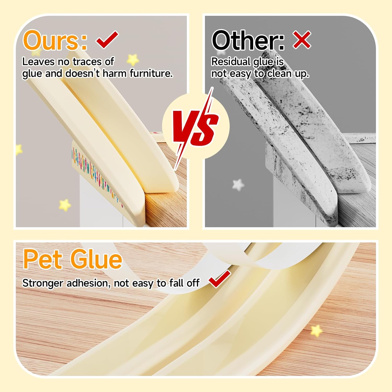 - Quality and Safety Materials: Your edge protector for baby is made of dense, soft, odorless foam.Baby edge protector comes with strong PET adhesive, which will not leave any marks on your furniture when you peel it off.Keep your baby safe while protecting your furniture.