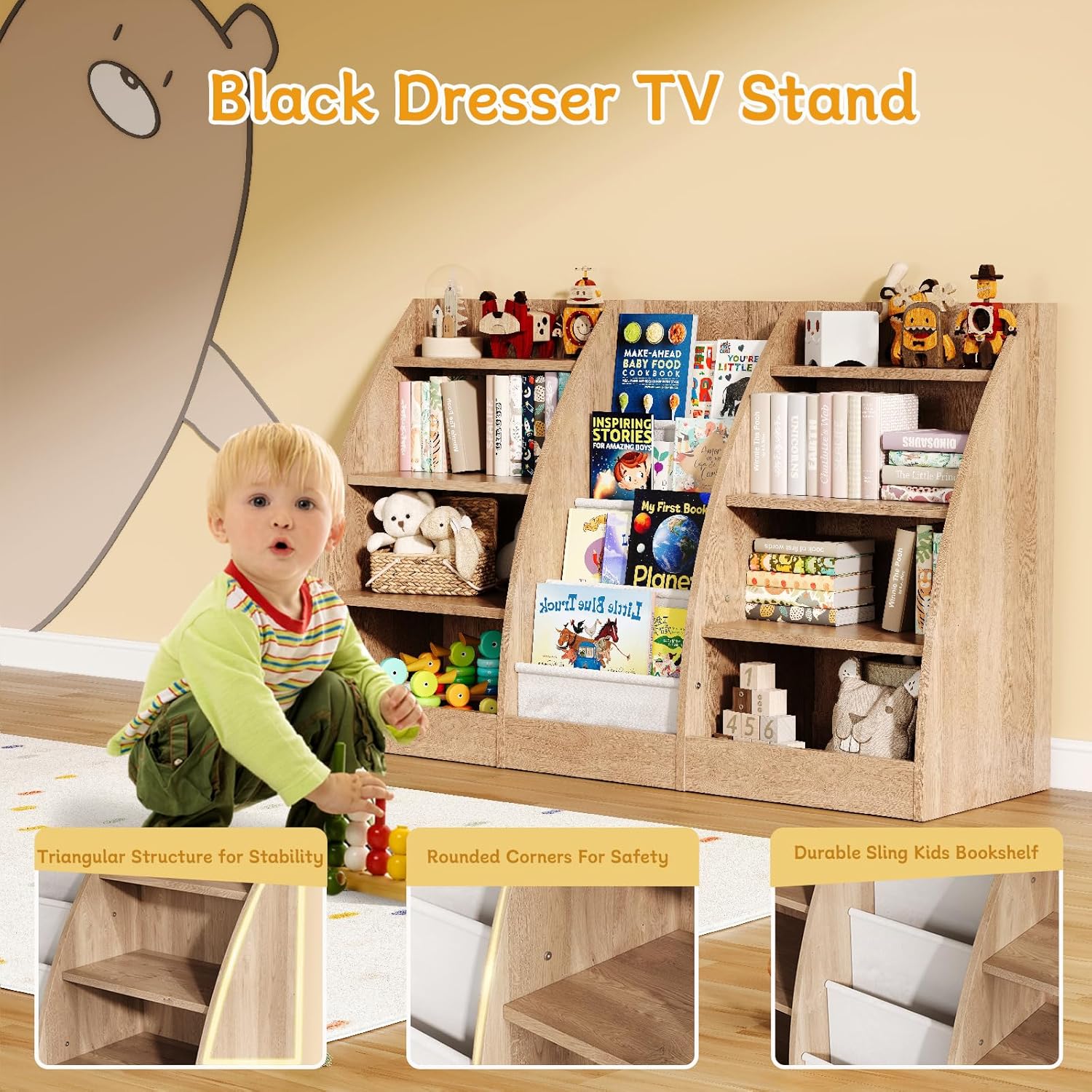 - XXL Book Shelf For Kids Rooms: Spark your child’s love for reading with FFBCFDK kids bookcase. This kids bookshelf features eight deep cotton linen sling pockets for displaying books cover-forward, plus ample storage for toys, trucks, plush animals, dolls, and art supplies